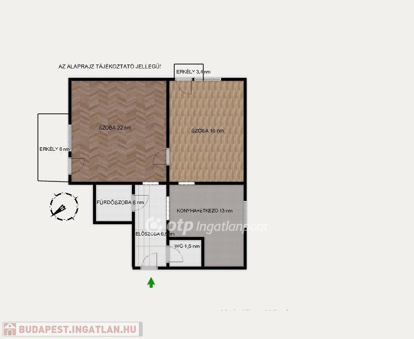 Az ingatlan egy jó állapotú, rendezett társasház első emeletén található. A délnyugati tájolású erkélyről szép kilátás nyílik a kertekre. A két tágas szobával rendelkező ingatlanban mindkét szobához erkély kapcsolódik.