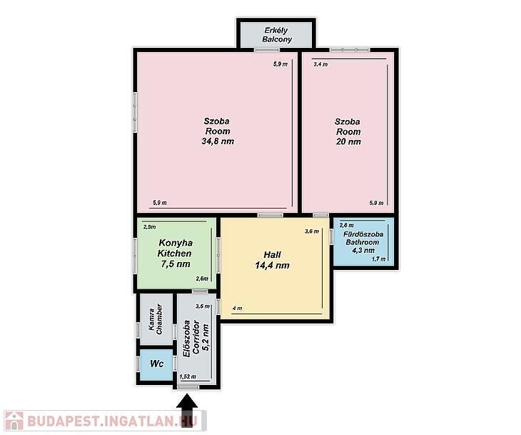 Az ingatlan praktikus alaprajzzal rendelkezik: a két tágas szoba mellett egy külön hall is található, amely étkezőként vagy dolgozósarokként is használható. Az déli-nyugati fekvésnek köszönhetően a lakás kellemesen világos, a délutáni órákban különösen szép fényviszonyokkal.