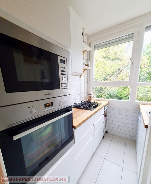 A lakásban a felújítás során: új külső- és belső nyílászárók, vízvezeték, burkolatok, beépített gépek, illetve praktikus és sok tárolási lehetőséget biztosító bútorok kerültek kialakításra.