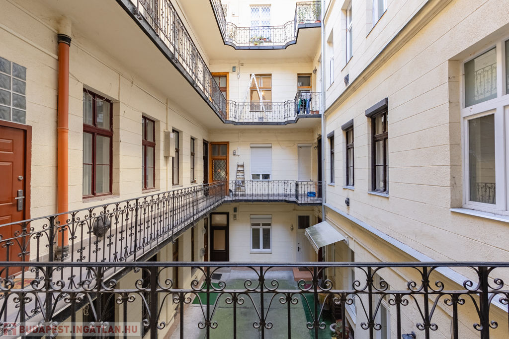 A villa hangulatú belső elrendezés és a villalakásokra jellemző stílusjegyeket hordozó ingatlan (kastélyparketta, nagy belmagasság, elegáns térkihasználás, tágas terek) az épület udvarából külön bejárattal rendelkezik, de az utca irányából első emelet magasságában található.