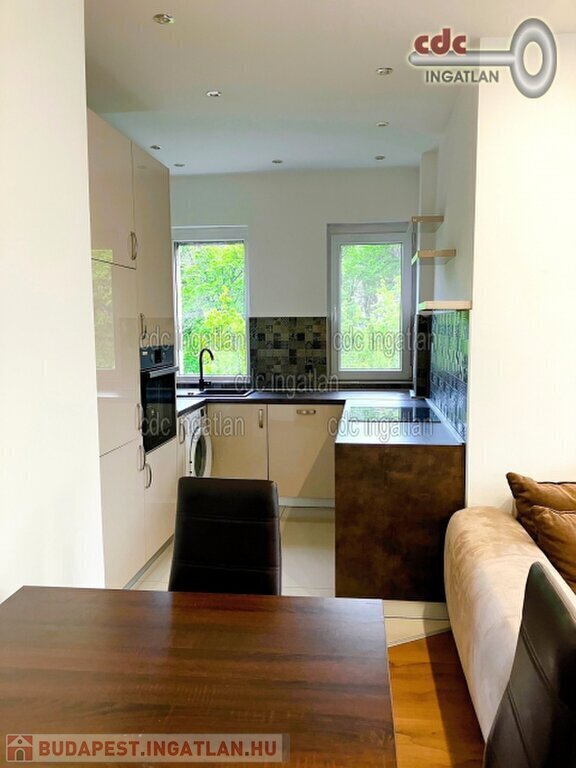 Megvételre kínálunk a II. kerületben, a Hárshegyen egy 70 m2-es, teljes körűen felújított, kelet-nyugati fekvésű, erkélyes lakást. Az ingatlan egyedik emeleti, három különnyíló szobája van, hihetetlenül világos, tágas, barátságos otthon. A konyha rendkívül praktikus, rengeteg tárolófelülettel rendelkezik, teljesen gépesített: mosógép, mosogatógép, sütő, indukciós főzőlap, hűtőszekrény és fagyasztó tartozik hozzá. A 8 m2-es teraszról gyönyörű kilátás nyílik az Erzsébet kilátóra és a környező erdőre. Minden szobából zöldre látni, a nappali nyugati fekvésű, a hatalmas háló keleti. A lakás házközponti fűtéses. A háztetőn lévő 300 m2-es, közös használatú teraszról mesés körpanoráma nyílik a városra és a természetre. A házhoz tartozik egy közös kert, parkolni ingyenesen az épület előtti parkolóban lehet. A 22-es, 222-es, 22A buszok a közelben állnak meg.