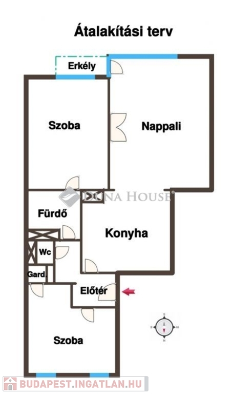 Elrendezés: 3 szoba, mely igény szerint tovább alakítható (3 egész szobássá).