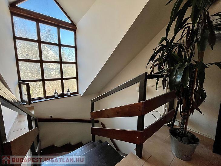A Kolosy tér és a Hármashatár-hegy közelében, egy hangulatos, macskaköves utcában kínálunk eladásra egy 148 m²-es, második emeleti tetőtéri lakást, egy négylakásos házban. A környék folyamatosan fejlődik, szemben lévő épületet épp felújítják, a közelben sportpálya is található.