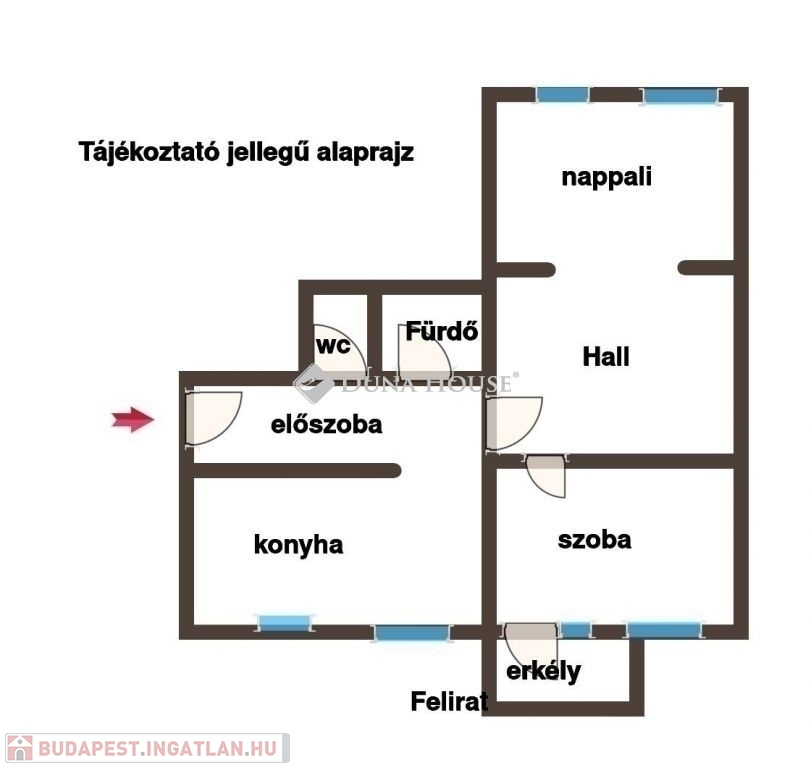2 szoba + hall, de könnyen 2 hálószobássá alakítható