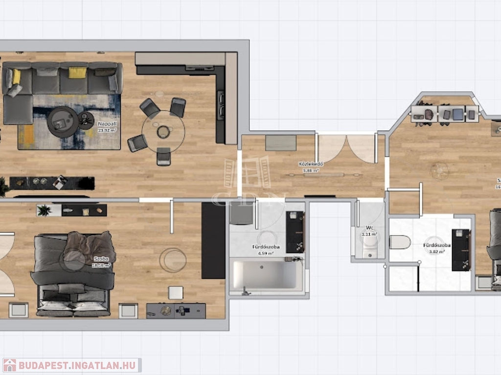• Két fürdőszoba: külön zuhanyzós és kádas