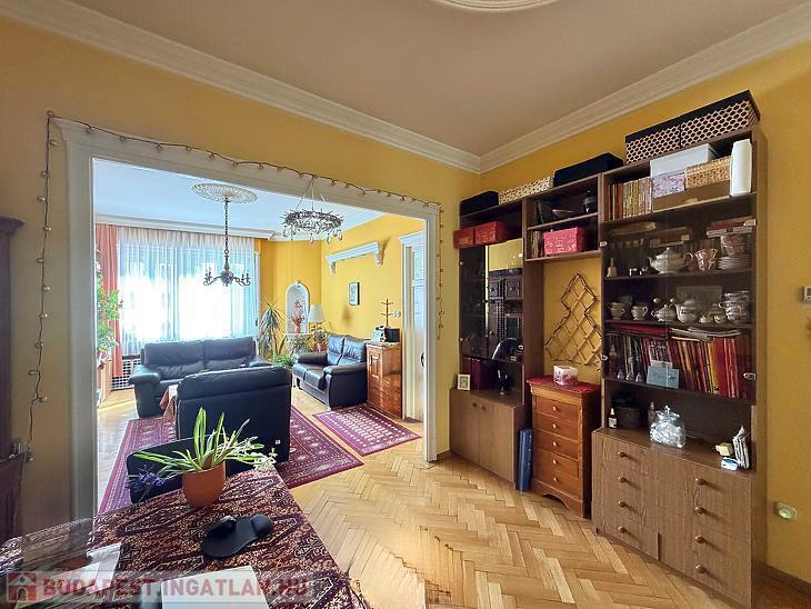 A Margit körút egyik frekventált részén kínálunk megvételre egy 92 nm-es, déli fekvésű, világos lakást, amely tágas tereivel és kiváló elhelyezkedésével remek lehetőséget kínál új tulajdonosának. A 2+fél szobás otthon igazi polgári hangulatot áraszt, amelyet a 3 méteres belmagasság tovább erősít, így a lakás még tágasabbnak és levegősebbnek hat.