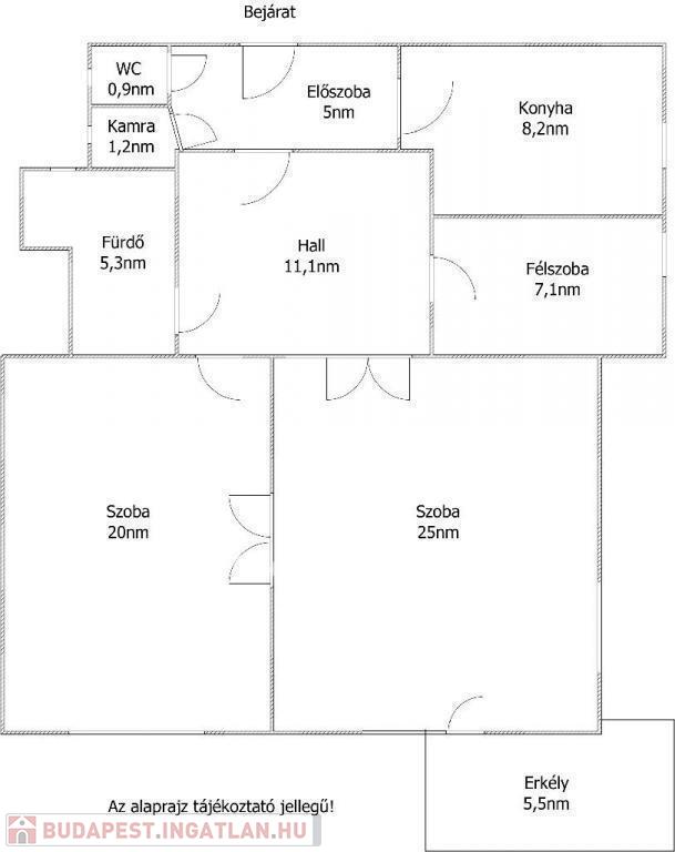 A nagyobb szobából nyílik az 5,5 nm-es ERKÉLY amely az utca hatalmas fáira néz.
