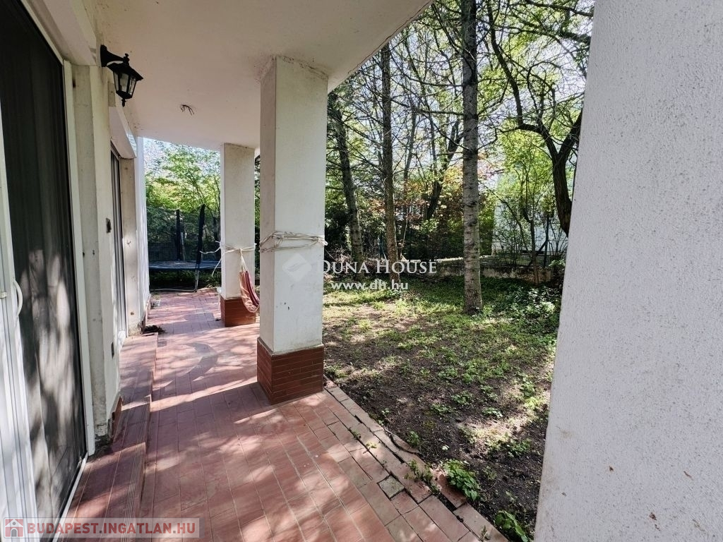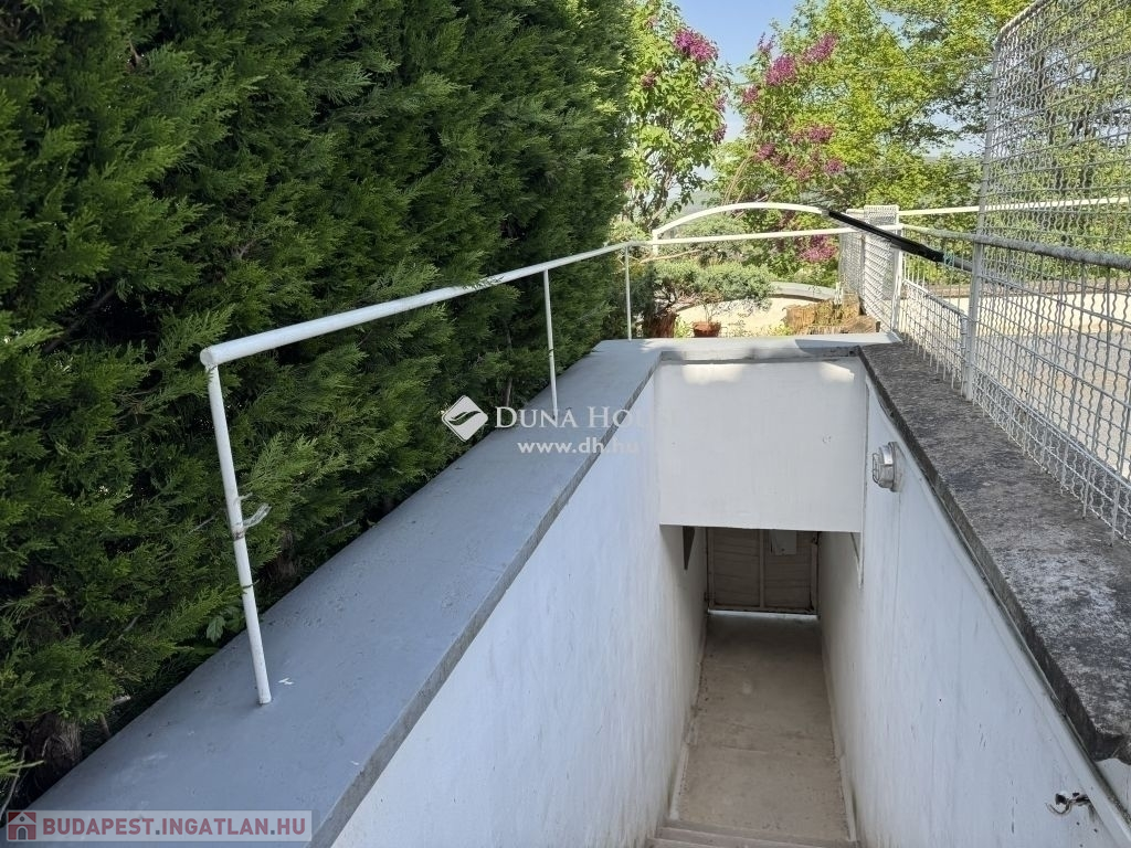 A lakás bejárata a kertből nyílik. Napfényes, 4 égtáj felé tájolt, ablakai a saját kertre, hegyekre panorámásak. A nagyobb fürdőben kád és zuhanyozó, a kisebb fürdőben zuhanyozó és mosókonyha található. A lakásból belső lépcsőn közelíthető meg a 84 m2-es, angolaknás, több helyiségből álló alagsor, 2 zuhanyzós fürdővel, kazánházzal. A parkolás az utcán ingyenes.