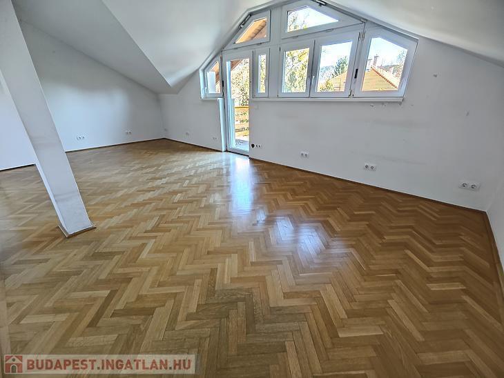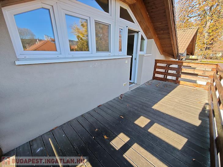 - Tetőtérben bruttó 106nm-es (nettó 77nm) 3 szobás, étkezőkonyhás lakás, melyhez tartozik egy 19nm-es terasz kilátással az Apáthy-sziklára
