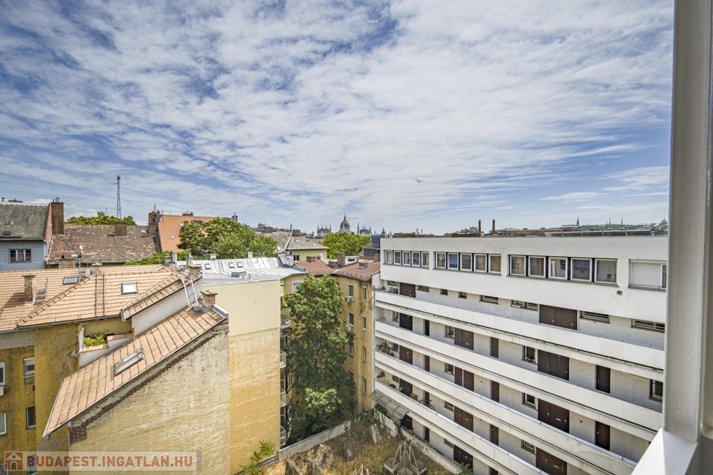 A II. kerületben, Viziváros szélén, a Dunától alig 3 percnyire eladó egy részben a Parlamentre és a Szabadság helyre panorámás, belsőépítész által áttervezett, nappali + 2 hálós, rendkívül világos, 76 m2-es, duplaerkélyes, legfelső, 6. emeleti lakás rendezett, zárt lépcsőházas, liftes társasházban, parkolási lehetőséggel.
