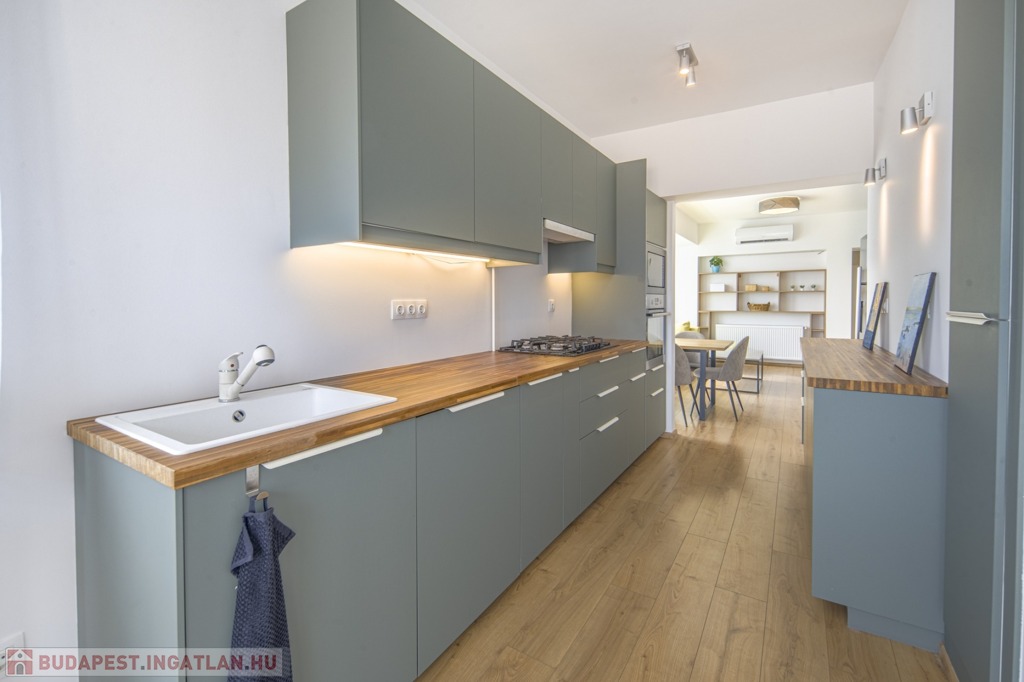 Az ingatlan felújítása mindenre kiterjedő volt: az összes vezeték, cső és nyílászáró, burkolatok, szekrények és konyha is cserélve lett, a hálószobák redőnyösek, a déli fekvésű nappaliban sötétítőfüggöny található. A konyha mosogatógéppel szerelt, a hűtőnek saját vízkiállás lett kialakítva a jégkockakészítéshez és a hidegvízhez.