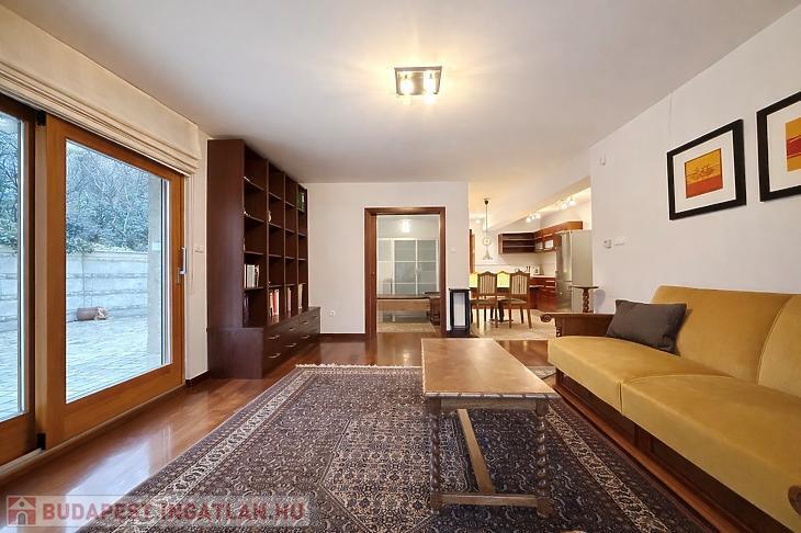 Eladásra kínálunk a II. kerület, Rózsadomb egyik nyugodt, zöldövezeti mellékutcájában egy 75 m²-es, 3 szobás (2 hálószoba + nappali), földszinti, 2006-ban teljeskörűen felújított lakást, egy zárt, rendezett társasházban.