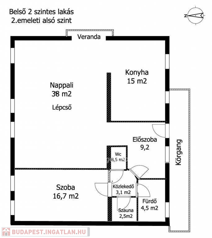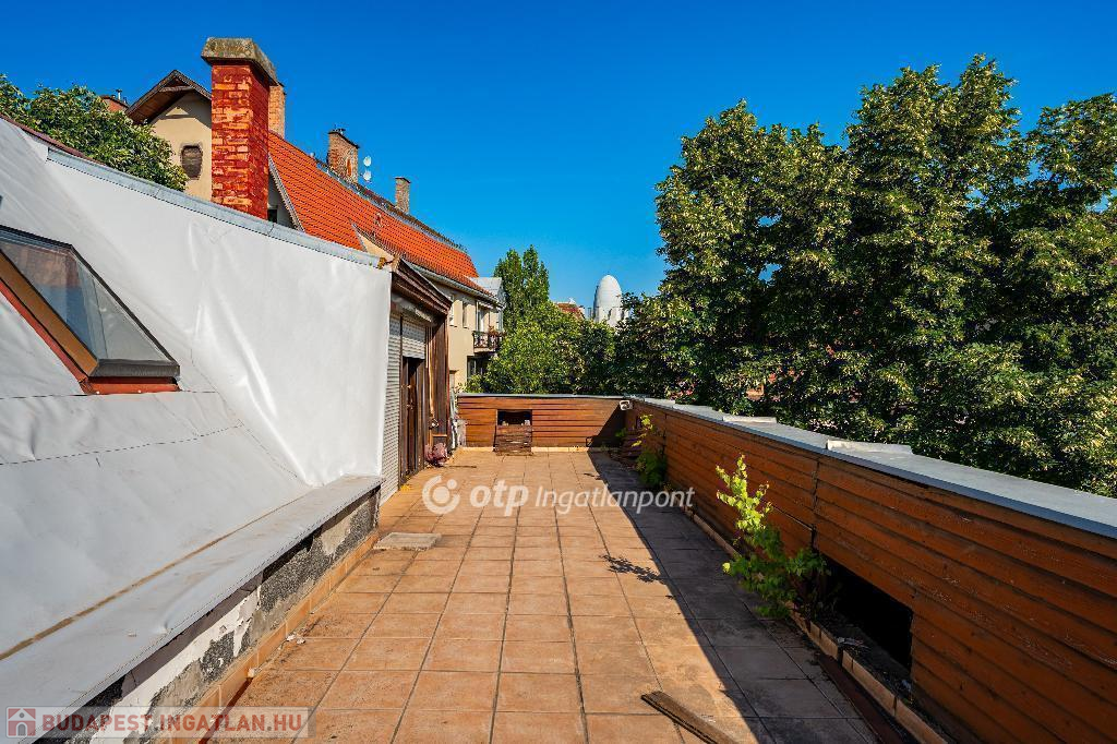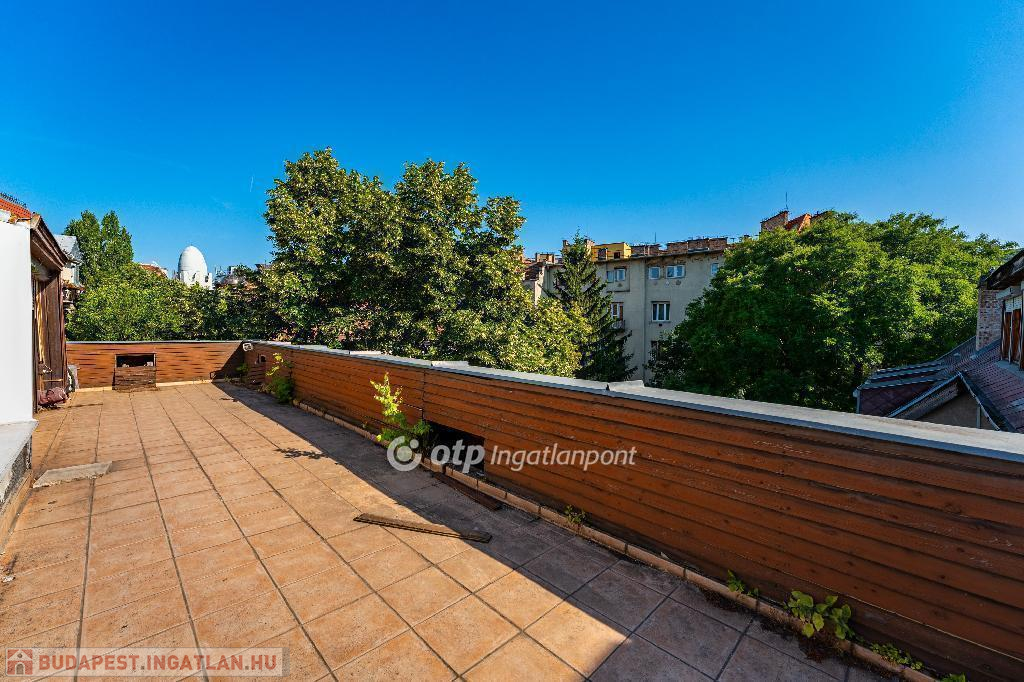 A 175 nm-es, belső kétszintes lakás jelenleg is jó beosztású. Világos és csendes, nagyvonalú terekkel rendelkező, jelenleg 3,5 szobás otthon. Jó alaprajzának köszönhetően több átalakítási lehetőség is rejlik a lakásban, amely amerikai konyhás nappali + 3-4 hálószobás lakássá is alakítható. Az ablakok a ház szép és csendes kertje felé néznek, DNY-i és ÉK-i tájolásúak. Az ingatlan egy 35 nm-es panorámás, tetőtéri terasszal rendelkezik, amely felújítás után az ingatlan egyik ékessége lesz.