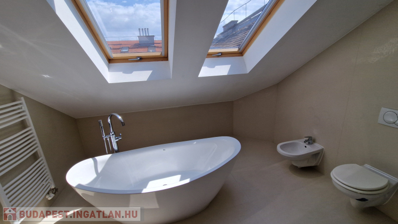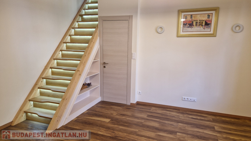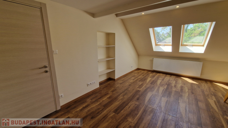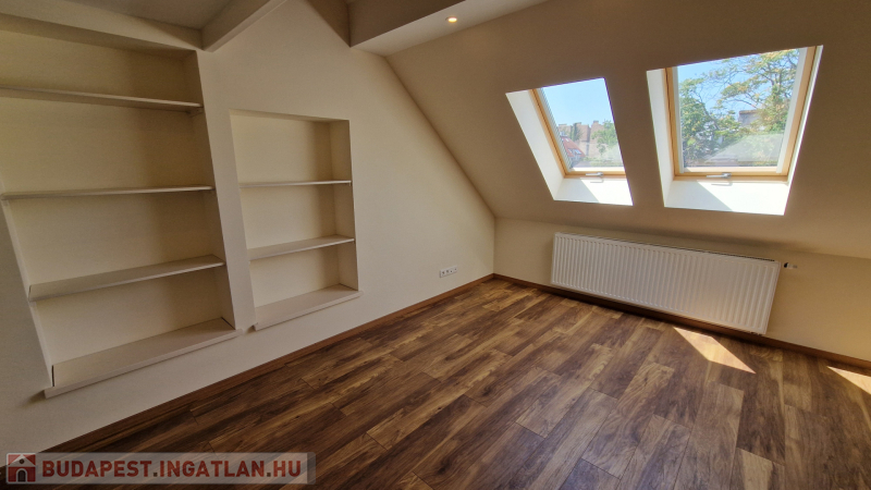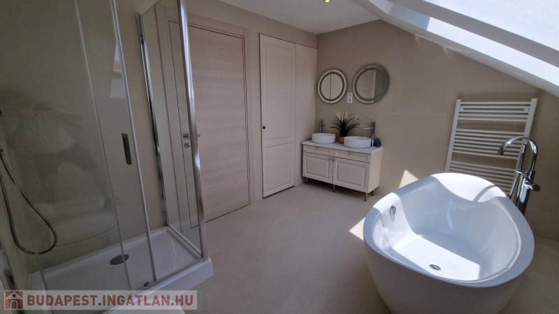 Rózsadomb alján, Mechwart ligethez közel, a Buday László utcában, eladó egy belső kétszintes, teljeskörűen, igényesen felújított, 3. emeleti, nettó 144nm-es (bruttó 177nm), 5 szobás, 3 fürdőszobás, világos, csendes, tehermentes, üres, azonnal költözhető lakás.