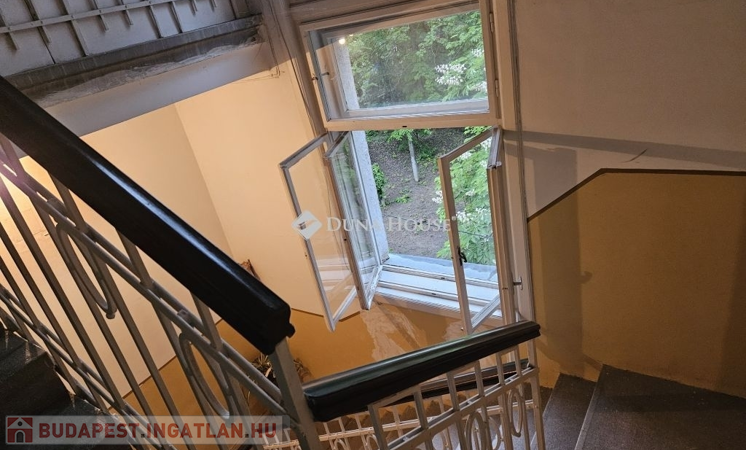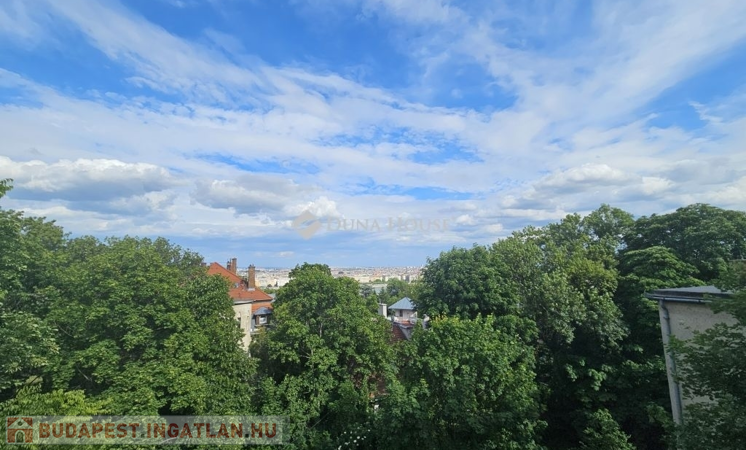 DUNÁRA NÉZŐ PANORÁMÁVAL rendelkező, különleges lakás eladó Rózsadombon!Az 1935-ben épült VILLAÉPÜLET 2. emeletén, a legfelső szinten (de nem tetőtérben!) található ez a - tulajdoni lap szerint 77, a valóságban - 82 négyzetméteres hatalmas nappali + 3 hálószobás lakás. Maga a lakás az 1970-es években került kialakításra és ezen az emeleten nincs is több lakás.A tágas, világos nappaliban található 3 különleges, beépített erkély-szerű építészeti struktúra, amik olvasósarokká, vagy mini télikertekké alakíthatóak. Ebben a helyiségben 3 nagy ablak található, amelyekből csodás a kilátás! A bájos kis konyhából pedig egyenesen a Dunára lehet lelátni a Parlamenttel a háttérben. Még a fürdőszoba ablaka is a csendes, zöld környékre néz!A három hálószoba az utca felé néz, de egyáltalán nem zajos egyrészt azért, mert a kerítéstől jóval beljebb helyezkedik el az épület, másrészt mert egészen kicsi az utca autóforglama. A külön nyíló 3 hálószobát rusztikus tartógerendák teszik még hangulatosabbá.Egy szép, fákkal teli, közös belső kerttel is rendelkezik a ház!Parkolás az utcán megoldható, szabad helyek mindig vannak.A környéken jár a 191-es busz, de gyalog negyed órára már a 17/19/41-es villamosokra is felszállhatunk, amikkel hamar a Széll Kálmán térre, Déli pályaudvarra érhetünk.