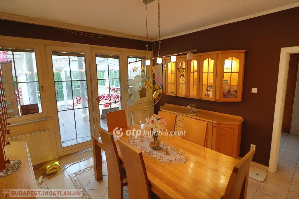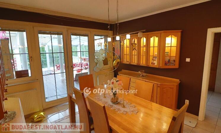 A békés kertvárosi zöldövezetben elhelyezkedő 1. emeleti 4 szobás lakás dupla nappalival, tágas tömör fenyőfa konyha-étkezővel, három hálószobával, nagyméretű fürdőszobával (fürdőkáddal és zuhanyzóval), külön WC-vel és tárolóval rendelkezik. Az ingatlanhoz tartozik egy 50 nm-es télikert, finn szaunával, egy 20 nm-es terasz és egy 8 nm-es fedett erkély. A lakás azonnal költözhető, igényesen bútorozott, gépesített, szép állapotú.