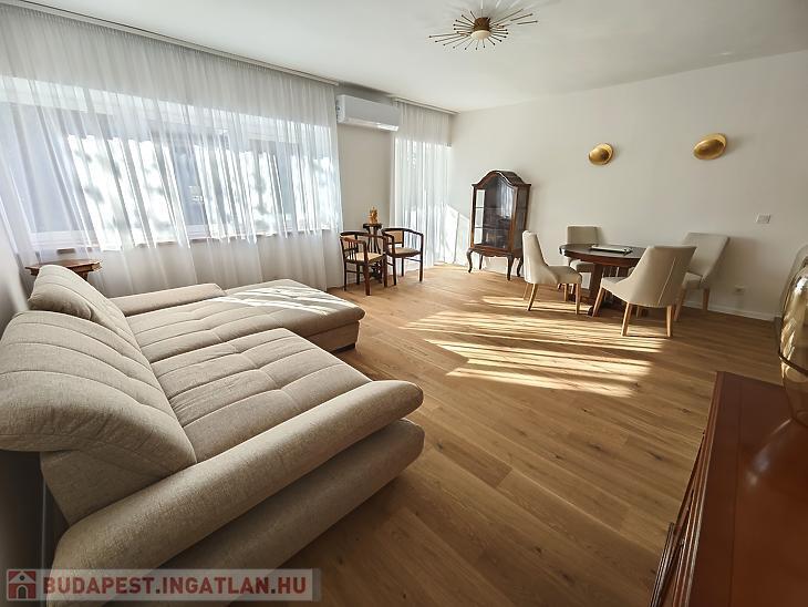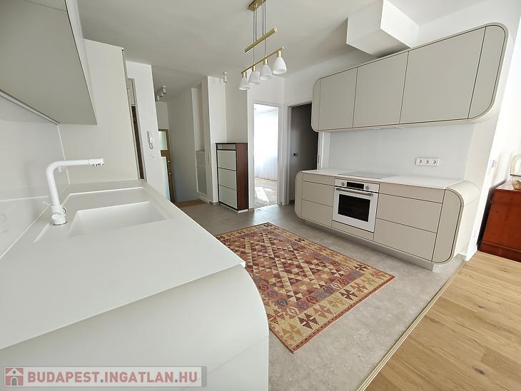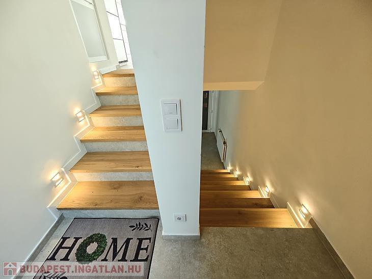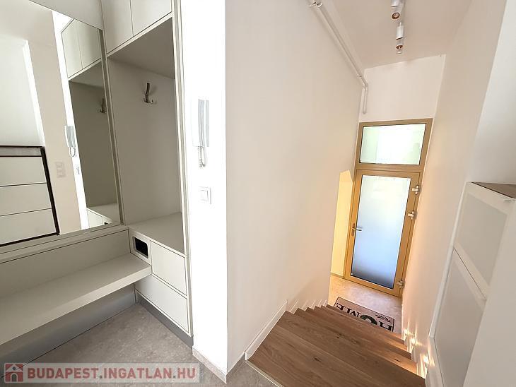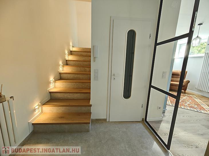Pasaréti tértől pár percre, egyirányú kis mellékutcában, 8 lakásos házban eladó egy belső 2 szintes frissen, magas színvonalon felújított, DNY-i és DK-i fekvésű lakás.