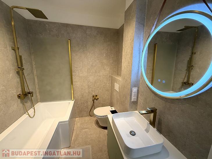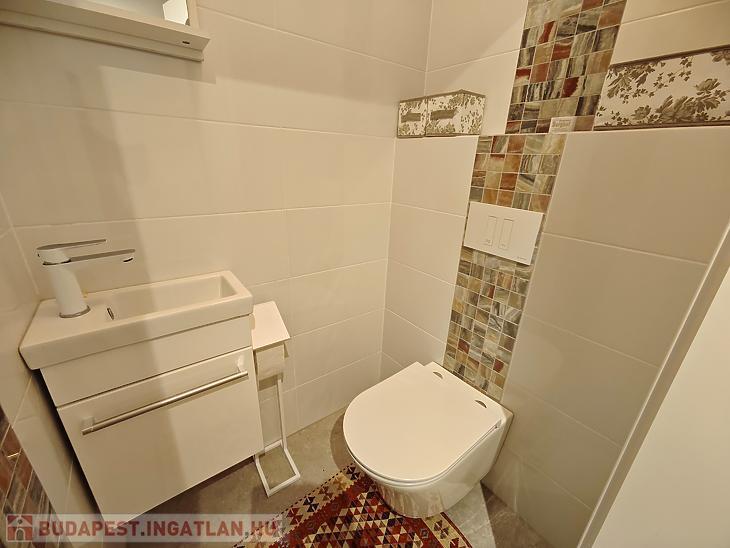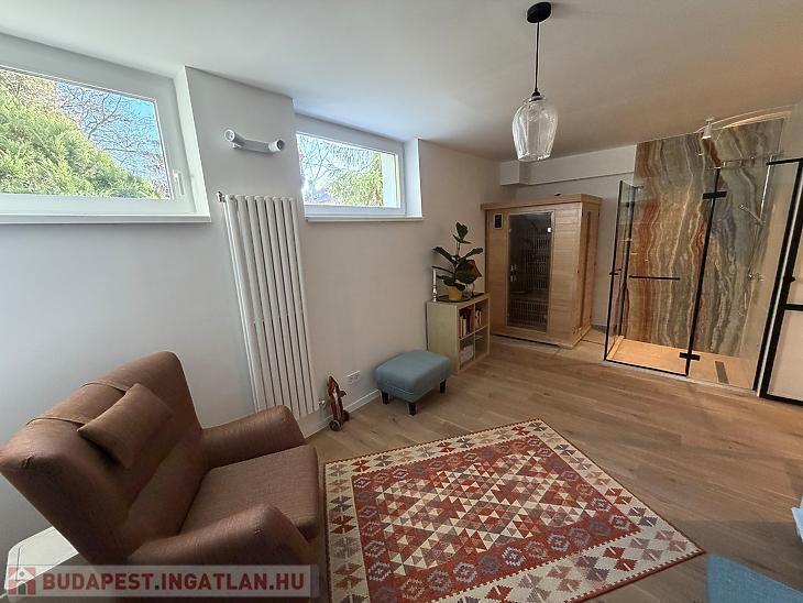 Az ingatlan fűtéséről egy Bosch kondenzációs kazán gondoskodik, a felső szinten padlófűtéssel, az alsó szinten pedig radiátoros fűtéssel. Szintén bekerült egy ultrahangos vízlágyító is. Mindkét szinten prémium minőségű burkolatok és szaniterek kerültek kiválasztásra és le-, illetve behelyezésre.