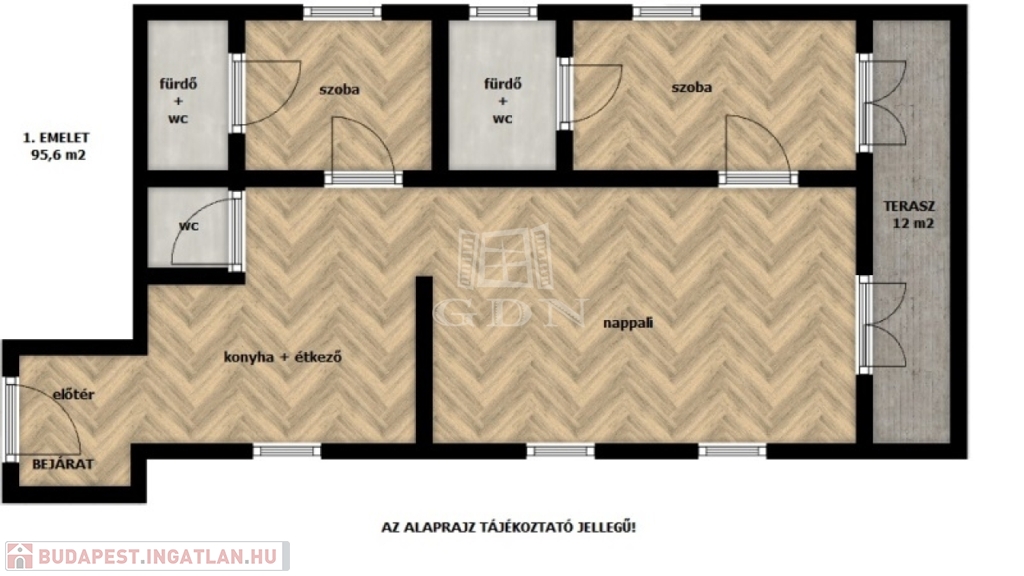 1. EMELET: 95,6 m2 – 3 szoba – 2 fürdő – TERASZ: 12 m2