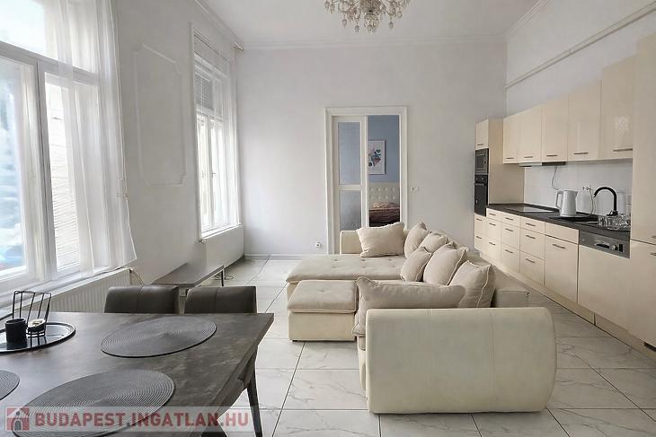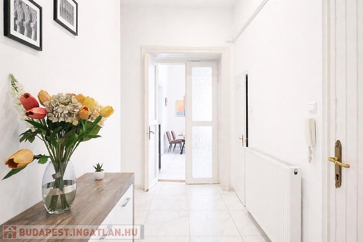 Keleti fekvésének köszönhetően a lakás rendkívül világos, a reggeli napfény természetes ragyogással tölti meg a tereket. A két fürdőszoba kényelmes és praktikus megoldást kínál akár család számára is. A felújítás során magas minőségű anyagokat és korszerű műszaki megoldásokat alkalmaztak, így az ingatlan azonnal költözhető, kompromisszumok nélkül.