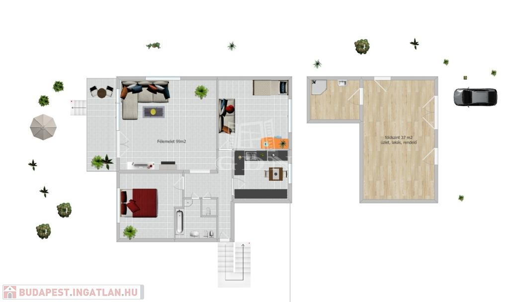 közvetlen KERTKAPCSOLAT mobil lépcsővel megoldott.