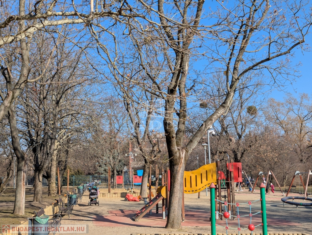 Közvetlen közelben park nagy játszótérrel és futókörrel.