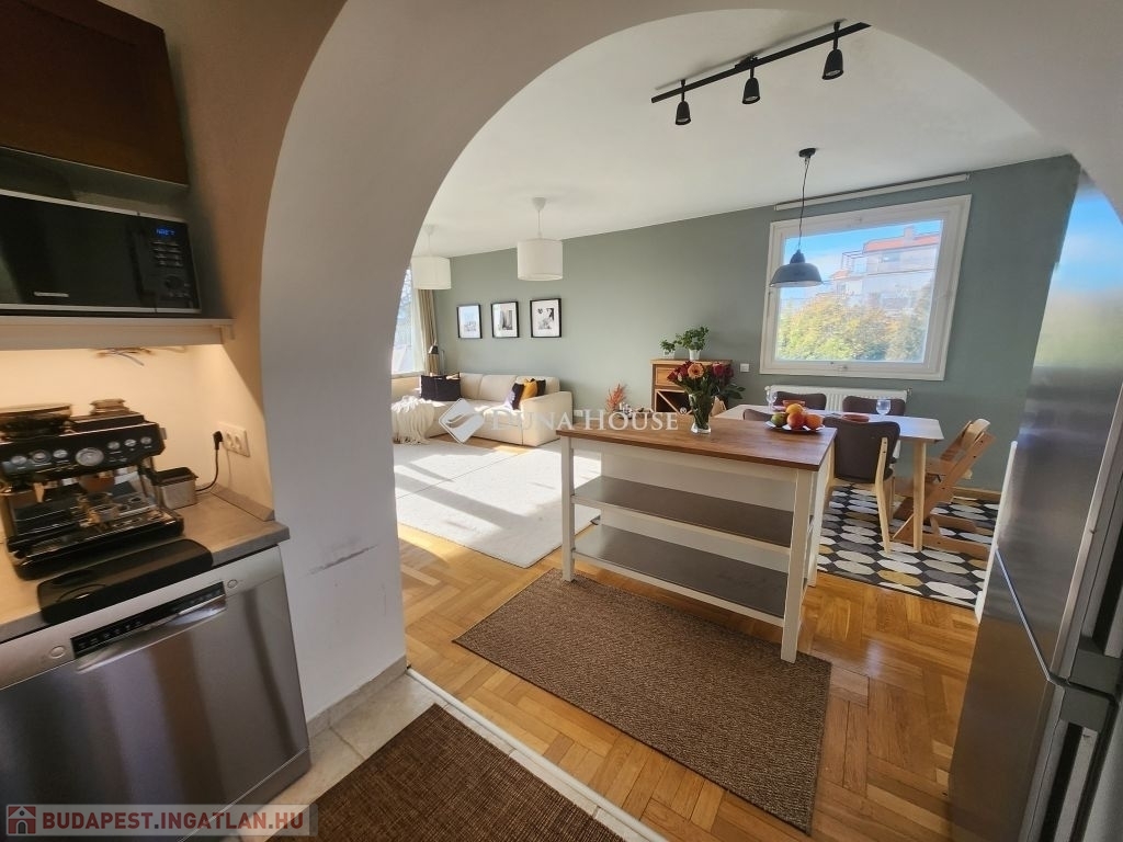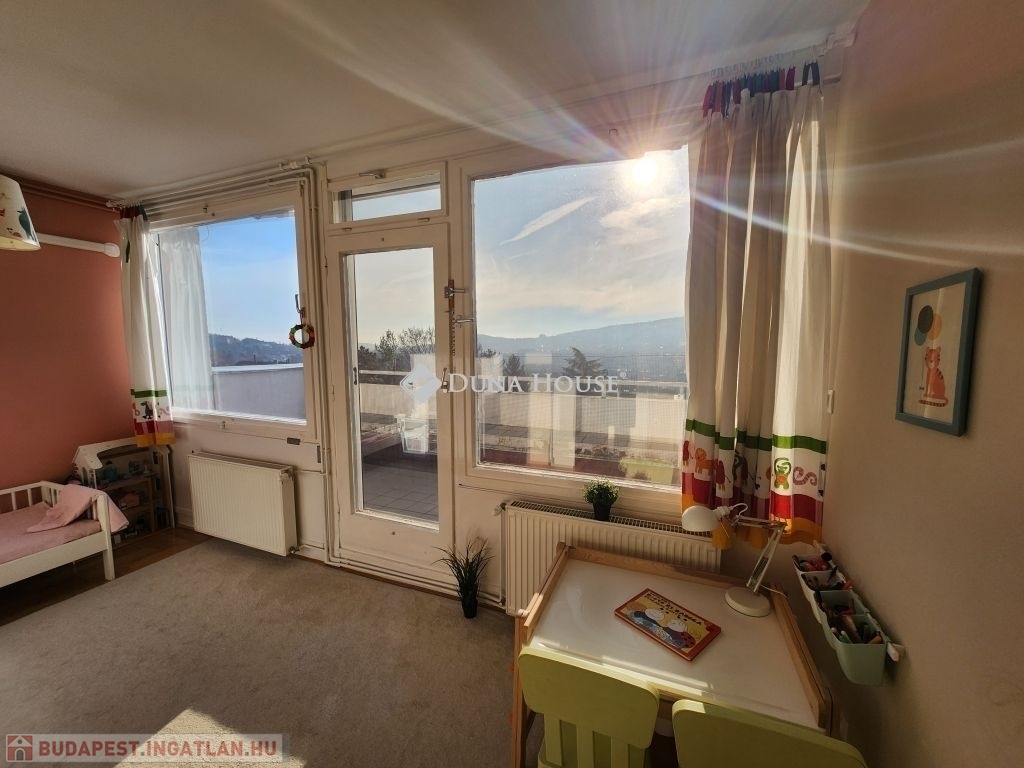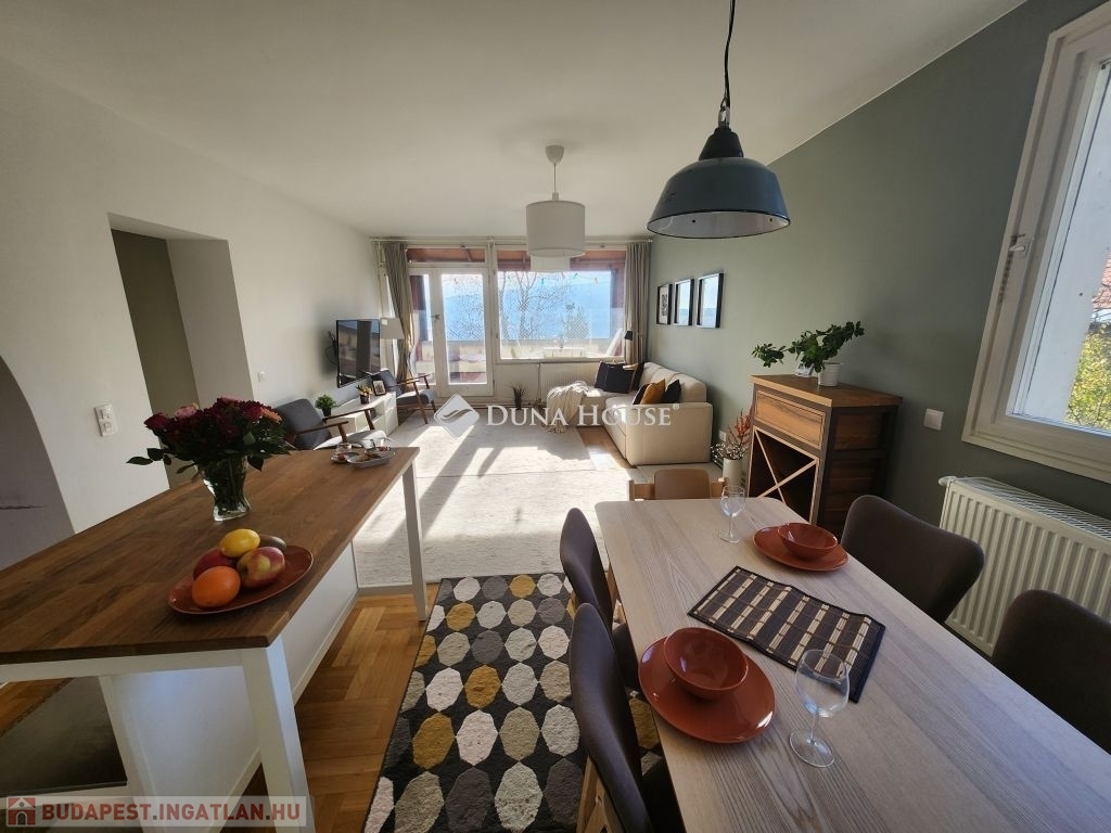 Belső RÓZSADOMB imádói - FIGYELEM!Eladásra kínálunk egy különleges adottságú, napfényes 4 szobás, napfényes, második emeleti otthont Budapest II. kerületében, amelyet a gyönyörű, zavartalan panoráma és a napfényben úszó terek tesznek igazán különlegessé.A lakás adottságaiA 112 nm-es nettó lakótér praktikus és élhető kialakítással rendelkezik. Három hálószoba, valamint egy egybefüggő, világos nappaliétkezőkonyha tér biztosítja a kényelmet és a tágas mindennapokat. A lakás külön fürdőszobát és külön mosdót is kínál, ami tovább növeli a funkcionalitást. Minden szobából saját erkély nyílik, ahonnan lenyűgöző panoráma tárul a szem elé. Déli fekvése miatt az otthon egész nap természetes fényben gazdag, amely meleg, befogadó hangulatot teremt.A jelenlegi elrendezés két lakás egybenyitásával jött létre 2022-ben, amikor részleges felújítás is történt.Az épületA ház 1979-ben épült, kétszintes, összesen kilenc lakás található benne, így csendes, családias légkört biztosít. A lakáshoz két külön tároló tartozik, amelyek nagyban megkönnyítik a mindennapi tárolási feladatokat. A közös költség 51.000 Ft, amely a felújítási alapot is magában foglalja.KörnyékAz ingatlan a II. kerület nyugodt, zöldövezeti részén található, Törökvészen. A környék rendezett utcái, a tiszta levegő és a természet közelsége kellemes lakókörnyezetet teremtenek. A mindennapi élethez szükséges intézmények bevásárlási lehetőségek, iskolák, sport- és rekreációs helyszínek könnyen elérhetők, és a közlekedés is kényelmesen megoldható. A lokáció azok számára különösen vonzó, akik értékelik a csendesebb budai életérzést, miközben gyorsan elérhető számukra a város nyüzsgése.Az ingatlan ideális választás mindazok számára, akik tágas, átgondolt elrendezésű és barátságos atmoszférájú otthont keresnek a II. kerület egyik kedvelt, zöldövezeti részén.További részletekért valamint megtekintésért keressen bizalommal, akár hétvégén is!
