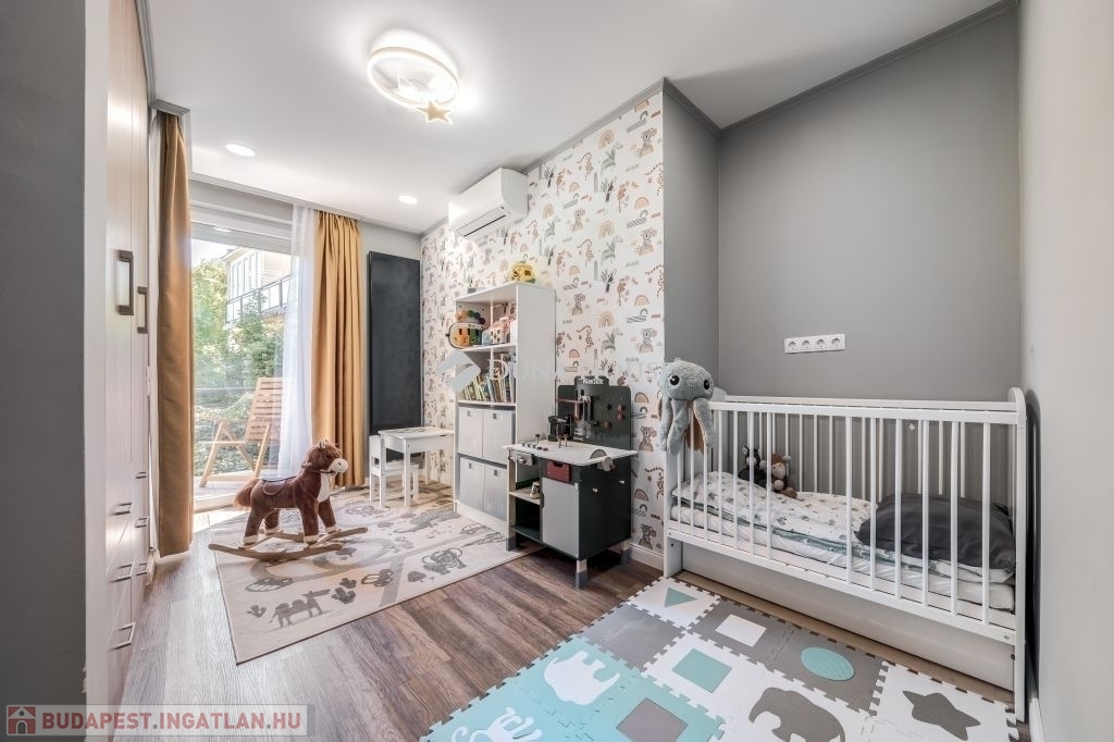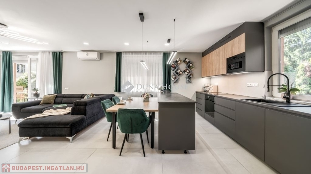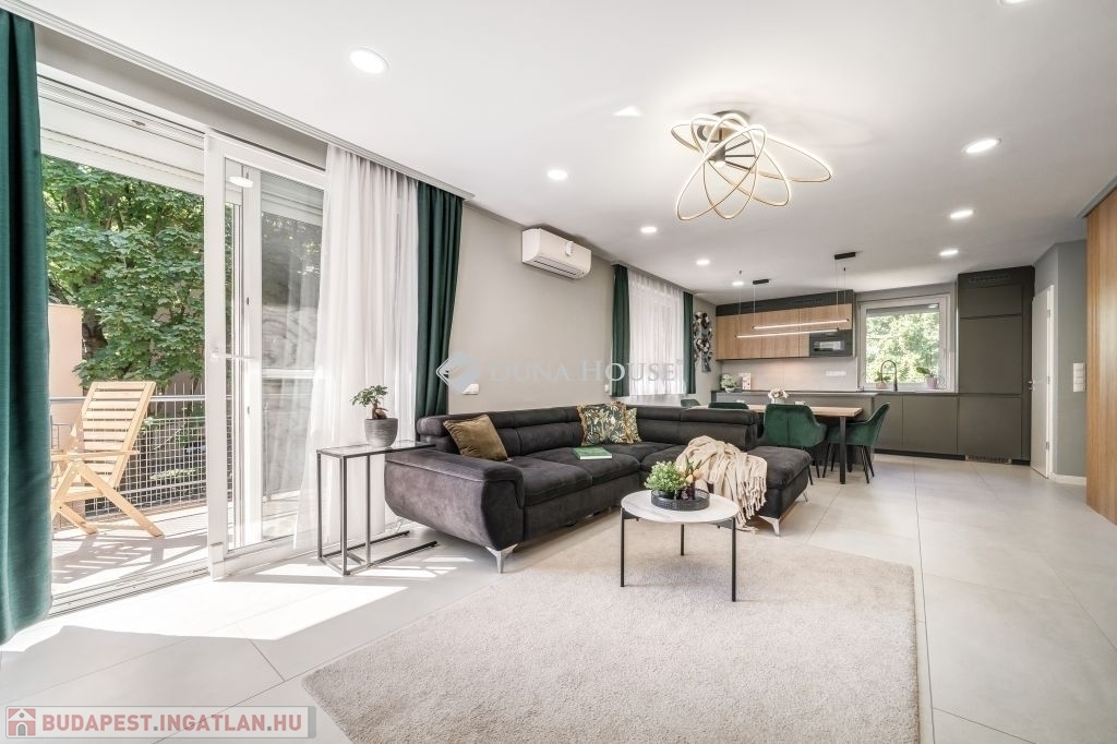 SOS KIVÉTELES lehetőség extra jó áron!!!!RÓZSADOMB szívében eladóvá vált prémium minőségű, 3 hálószobás, 2 fürdőszobás, dupla teraszos lakás!A II. kerület egyik legnyugodtabb, mégis kiválóan megközelíthető részén eladó ez a teljes körűen felújított, napfényben úszó, madárcsicsergős otthon, amelyet a nagy üvegfelületek és a körben áradó fény, valamint a dupla terasz tesz igazán különlegessé.A tágas, egybenyitott nappaliétkezőkonyha tér a lakás központi eleme, ahol a modern kialakítás, az elegáns részletek és a délkeleti tájolás egyedülálló életteret teremtenek. Két terasz kapcsolódik az ingatlanhoz, így a reggeli kávé vagy az esti pihenés mindig a természet közelségében telhet.A lakás három kényelmes szobát kínál: egy tágas szülői hálót, egy gyerekszobát és egy dolgozó- vagy vendégszobát.A két fürdőszoba, valamint a közlekedőkben kialakított, hatalmas, 8 folyóméteres gardróbfolyosó biztosítja a mindennapok kényelmét és rendezettségét.A lakáshoz tartozik egy külön, 5 nm-es tároló (4 M Ft értékben), valamint egy dupla garázs (30 M Ft értékben), amelyek tovább növelik az ingatlan értékét és komfortját. A lakásban található minőségi mobiliák (4 M Ft) egyedi megállapodás keretében elérhetők.Fontos információ: a lakás minimális rezsivel fenntartható (áram: 7 e Ft/hó, gáz: 12 e Ft/hó, víz: 5 e Ft/hó) a 2020-ban kialakított 25 cm-es hőszigetelésnek, valamint a tavaly beépített új Remeha kazánnak és kéménybélelésnek köszönhetően. A lakás generálfelújítást kapott 2022-ben.Ez az otthon nem csupán egy ingatlan, hanem a modern, kifinomult városi élet megtestesítője, ahol a fény, a tér és az elegancia tökéletes egységbe rendeződik.Várom megtisztelő megkeresésüket, akár hétvégén is!