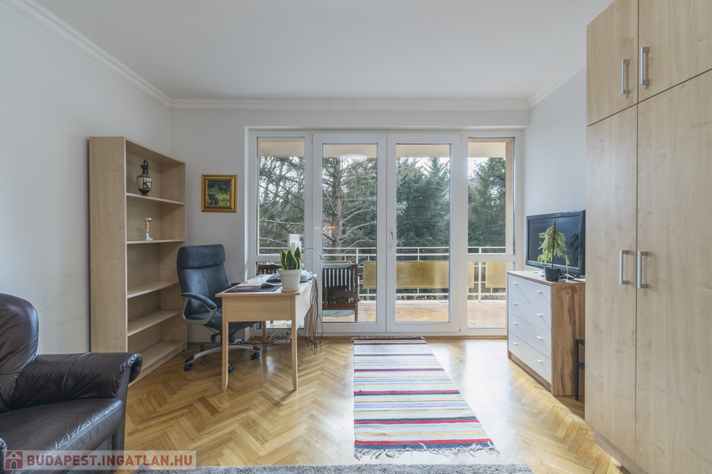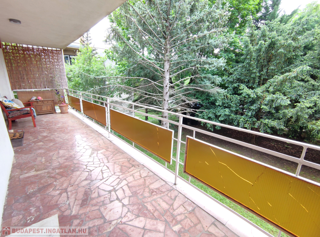 A lakás délnyugati fekvésű, 23 nm-es napfényes teraszáról gyönyörű kilátás nyílik a zöld környezetre. Mindhárom szoba kertre néző, külön bejáratú, a nappali és az egyik hálószoba is a teraszra nyílik.