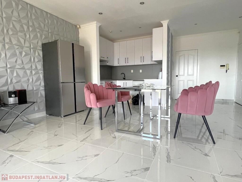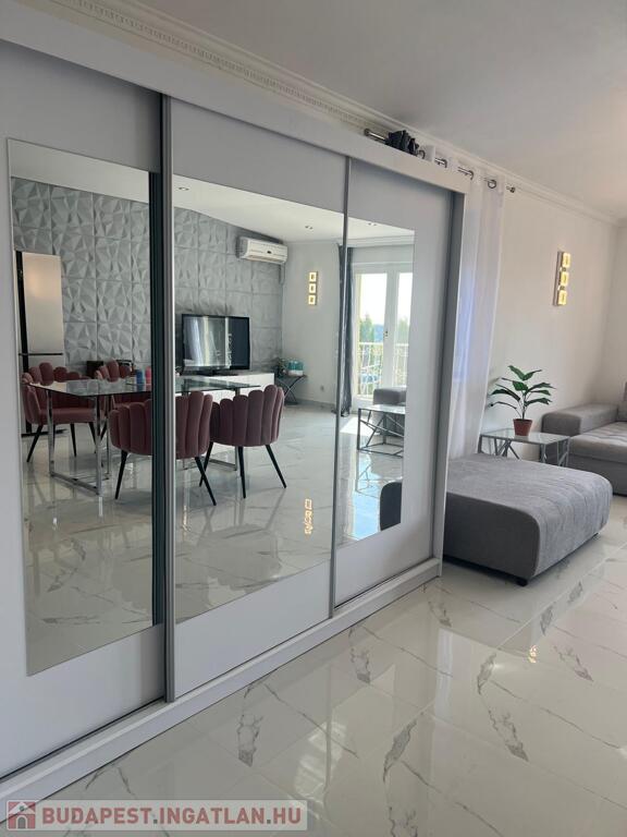 The large windows of the American kitchen-dining room and living room let in sunlight, and from the balcony you can enjoy a beautiful panorama of the Buda hills and the garden with a pool. The windows are equipped with shutters. The apartment was completely renovated in 2006.