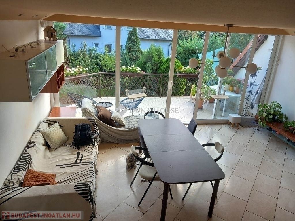 A ház sorházi elrendezésű, azonban csupán egy szomszéddal érintkezik, így kivételesen intim, családi ház jellegű életteret biztosít. A Budai-hegyek felé nyíló lenyűgöző panoráma, a nagy terasz és a privát kert a város egyik legkellemesebb zöld környezetében kínál nyugalmat.