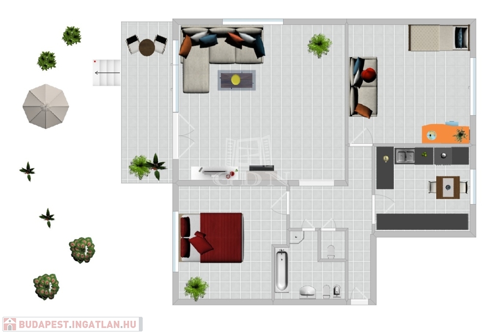Kertkapcsolat, közvetlen lépcső vezet a kertbe