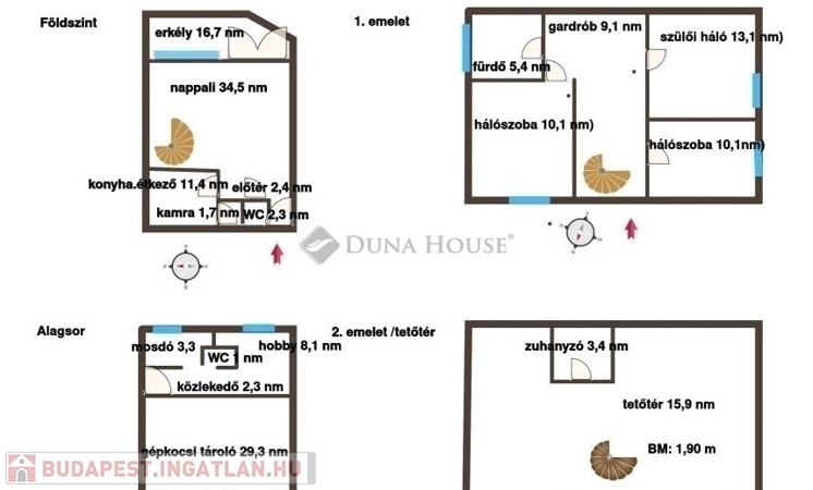 A II. kerület zöldövezeti, rendkívül keresett részén, Törökvészen kínálunk eladásra egy 184 m²-es, 4 szintes, panorámás, szélső sorházi otthont.