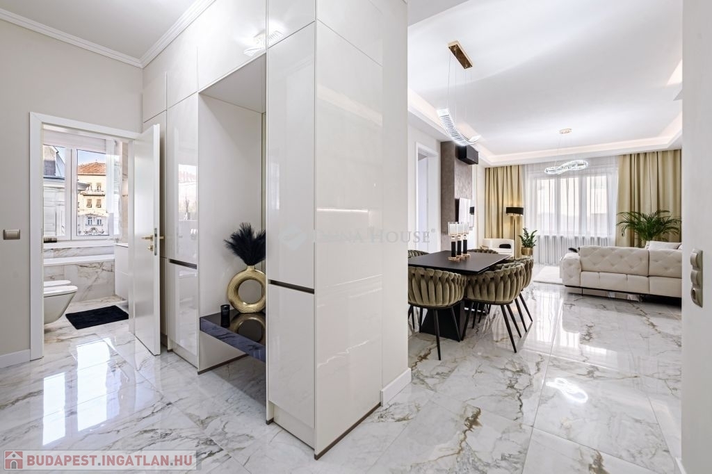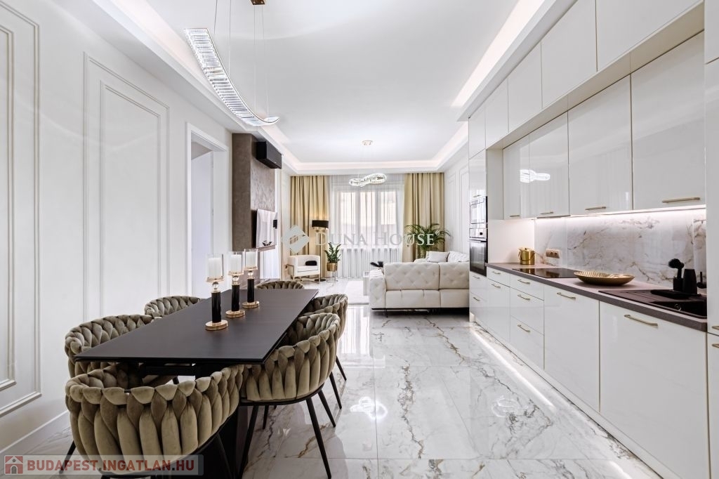 ERKÉLYES DUNAI PANORÁMÁS LUXUS KIVITELEZÉSBEN FELÚJÍTOTT 91-nm-es LAKÁS ELADÓ!2. kerület frekventált részén a Bem József utcában eladóvá vált ez a 91 nm-es, 5nm-es erkéllyel rendelkező, utcai nézetű, Dunai panorámás, napfényes, luxus kivitelezésben felújított lakás, amely egy rendezett, szép állapotú Társasház 3.emeletén található.A belsőépítészek nagy hangsúlyt fektettek a lehető legpraktikusabb elrendezésre, ezzel is minél jobban kihasználva a lakás adottságait. Így került kialakításra 2 hálószoba, 2 fürdőszoba, tágas gépesített konyha étkezővel, hatalmas nappali, tágas előszoba és egy gardrób szoba.A lakásban a bútorok egyrészt neves lakberendező által egyedileg tervezett és gyártott exkluzív, illetve egyedi olasz desing bútorokkal berendezett, melyeket még szebbé varázsolnak a gyönyörű textíliák.Minden térben található egy-egy jól használható, azaz tárolásra alkalmas beépített bútordarab, így például a lakásban lévő beépített szekrények rengeteg rakodófelületet biztosítanak az új lakók számára. A lakás továbbá teljeskörűen gépesített, mosó-szárítógéppel, mosogatógéppel, beépített minőségi konyhagépekkel, hangszigeteléssel, Daikin hűtő-fűtő klímákkal felszerelt.Hálószobák díszfalai kővel és lamellákkal burkoltak, melyek exkluzív, szép felületei egyedi és különleges hatást kölcsönöznek a térnek. Az ágyak egyedileg ide tervezett kárpit fejvégeket kaptak, melyek mögött egyedileg tervezett világítástechnika került kialakításra, hogy még hangulatosabbá tegye a hálószobákat.A fürdőszobákban kiváló minőségű szaniterek (Laufen, Blanco Blancozia, Arezzo...stb.) és a lakás stílusához illő olasz design burkolatok kerültek felhasználásra. A nappaliban és hálószobákban kiváló technikával rendelkező okos TV-k kerültek felszerelése, illetve Daikin klímák kerültek beépítésre. Neves designerek dekorációi igazán modern, mégis elegáns hangulatúvá teszik az ingatlant.A vételár tartalmazza a teljes bútorzatot és kiegészítőket!Extrák:Led világítás, Klíma, Bio kandalló, Hangszigetelés, Gránit mosogató, Egyedileg gyártott olasz bútorok, Mosható falfelületek, Bio kandalló, klímákAz elegáns megjelenést kölcsönöz ismert tervezők textíliái és dekorációs elemei.-2023-ban teljeskörű felújítás-Daikin Hűtő-fűtő Klíma-Panoráma Dunára, Margithídra-Tágas panorámás erkély-Hőszigetelt nyílászárók-Szomszédos oldalak és utca felőli falfelületek hangszigetelése-Az ablakok alumínium elektromos redőnyökkel felszerelt-Minőségi konyhagépek kerültek beszerelésre-Igényes olasz dezing bútorokkal berendezettParkolási lehetőség:A társasház mellett lévő szálloda teremgarázsában autóbeálló bérelhető vagy vásárolható.Környék:A környék frekventált, Margit híd, Margitsziget és a Duna part sétatávolságra található. A ház mellett épül a BEM projekt, itt luxus szállodát, irodaházat létesítenek, parkosítanak, korlátozzák a forgalmat.Amennyiben az ingatlan felkeltette érdeklődését, keressen bizalommal a részletekkel kapcsolatosan.FEELING OF LIFE IN BUDA..!RENOVATED 91 sqm APARTMENT WITH BALCONY AND PANORAMIC DANUBE VIEW FOR SALE!In Bem József utca, a frequented part of the 2nd district, this 91 sqm, 5 sqm balcony, street view,Danube panoramic, sunny, luxuriously renovated apartment is for sale, located on the 3rd floor of anorderly, well-maintained condominium.The interior designers put a lot of emphasis on the most practical layout possible, thus making themost of the apartment, 2 bedrooms, 2 bathrooms, a spacious mechanized kitchen with a diningroom, a huge living room, a spacious hall and a wardrobe room.The furniture in the apartment is furnished with exclusive and unique Italian design furnitureindividually designed and manufactured by a renowned interior designer, which is made even morebeautiful by the beautiful textiles.Every space has a built-in piece of furniture that can be suitable for storage, so for example the built-in wardrobes in the apartment provide plenty of storage space for the new residents. The apartmentis also fully mechanized, equipped with a washer-dryer, a dishwasher, built-in quality kitchenappliances, sound insulation, and Daikin cooling and heating air conditioners.The decorative walls of the bedrooms are covered with stone and slats, the exclusive, beautifulsurfaces of which give the space a unique and special effect. The beds were given custom-designedupholstery headboards, behind which individually designed lighting technology was installed to makethe bedrooms even more cozy.In the bathrooms, high-quality sanitary ware (Laufen, Blanco Blancozia, Arezzo...etc.) and Italiandesign coverings matching the style of the apartment were used. Smart TVs with excellenttechnology were installed in the living room and bedrooms, and Daikin air conditioners wereinstalled. Decorations by well-known designers give the property a truly modern, yet elegantatmosphere.Extras:Led lighting, Air conditioning, Bio fireplace, Sound insulation, Granite sink, Custom-made Italianfurniture, Washable wall surfaces, Bio fireplace, air conditionersTextiles and decorative elements from well-known designers give it an elegant look.- Complete renovation in 2023-Daikin Cooling-heating Air conditioner- Panorama of the Danube, Margthíd-Spacious panoramic balcony-Heat-insulated doors and windows-Sound insulation of neighboring sides and wall surfaces facing the street-The windows are equipped with aluminum electric shutters- Quality kitchen appliances have been installed- Furnished with refined Italian design furnitureParking opportunity:A parking space can be rented or purchased in the garage of the hotel next to the apartmentbuilding.Surroundings:The neighborhood is frequented, Margit Bridge, Margit Island and the Danube shore