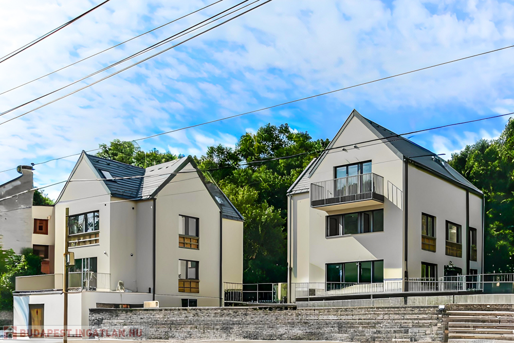 Az eladásra kínált új építésű lakás, avagy házrész Budapest II. kerületének Lipótmezői részén helyezkedik el erdei környezetben.