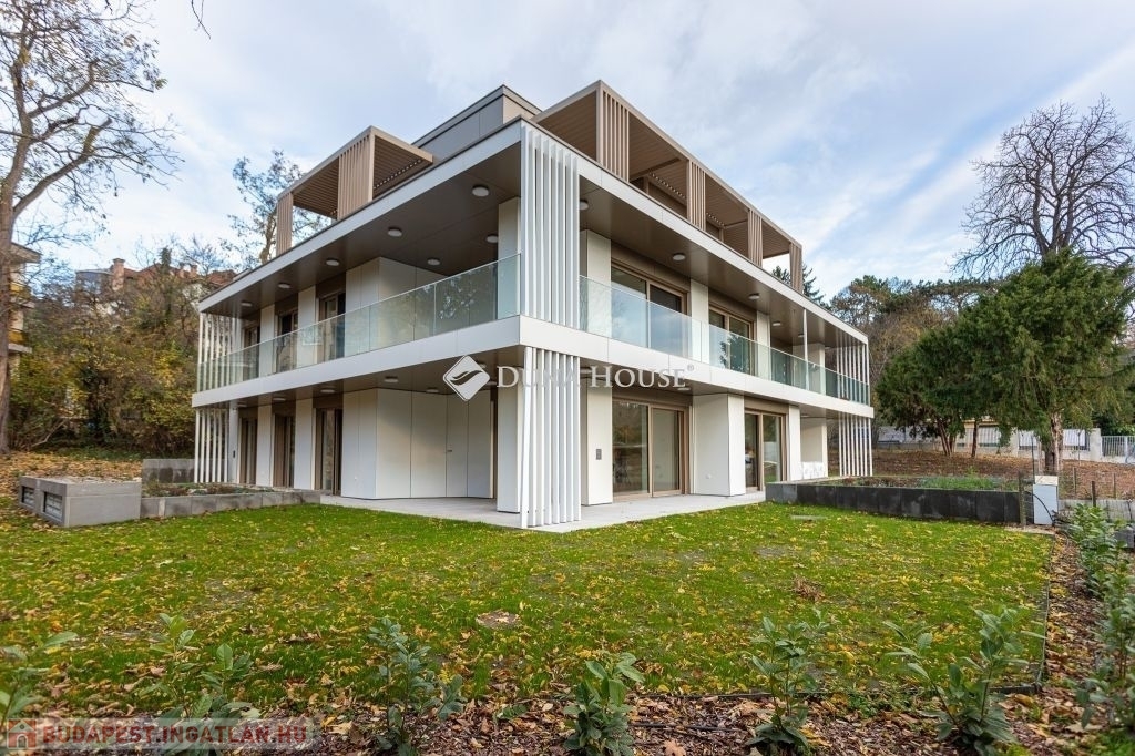 Pasarét zöldövezeti részén, a II. kerület egyik legkedveltebb pontján épült meg 2025-ben ez az exkluzív, ötlakásos, liftes társasház, amely modern építészetével, prémium anyaghasználatával és innovatív technológiáival a kortárs luxus új szintjét képviseli. A 2234 m²-es telken álló háromszintes épület a természetközeli életérzést ötvözi a városi kényelemmel, nagy hangsúlyt fektetve a tágas, világos életterekre és a privát szférára. Minden lakás teraszos, a felszereltség része a jacuzzi és a pergola, a földszinti otthonok kertkapcsolatosak, a felsőbb szintekről zöld lombkoronára vagy panorámára nyílik kilátás.