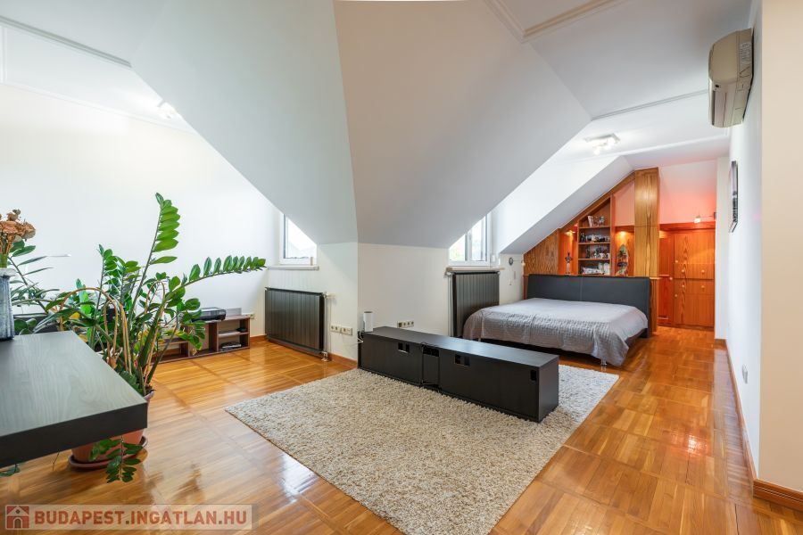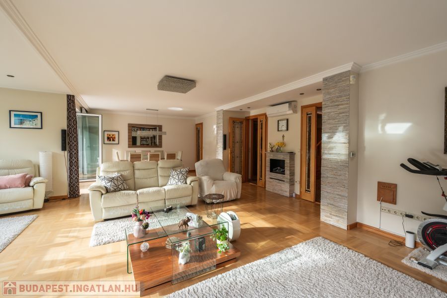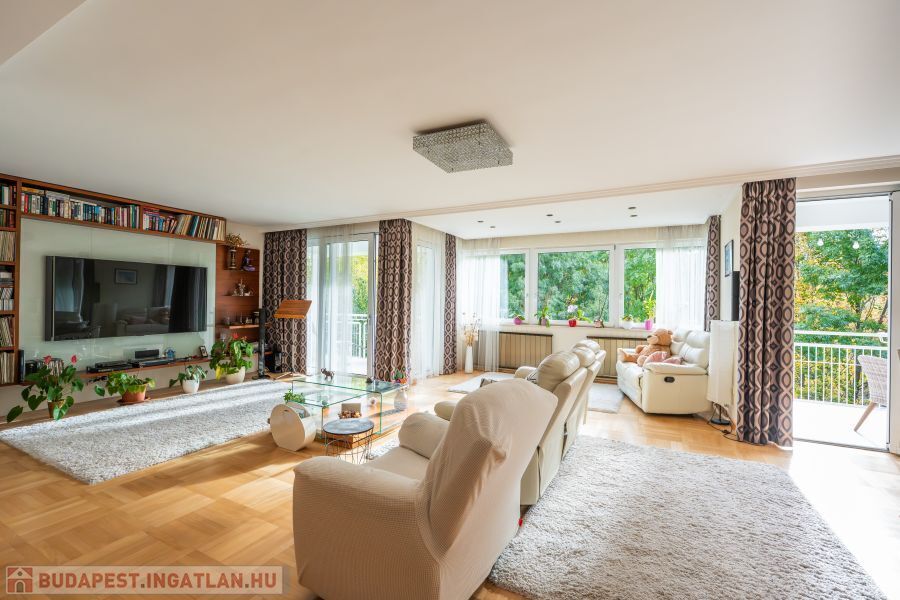Álomszerű, modern és tágas ingatlan eladó Budapest egyik legkeresettebb zöldövezeti részén, a Guyon Richárd utcában. Ez az ingatlan remek kialakítású, nagy erkélyes, két különálló lakás egybe nyitásából