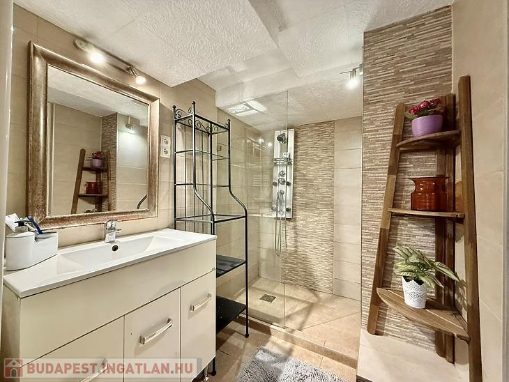 A felújítás során minden megújult – vezetékek, burkolatok, nyílászárók –, több válaszfal elbontásával pedig egy sokkal tágasabb tér alakult ki. A lakás külön kamrával, külön WC-vel és egy ízlésesen kialakított zuhanyzós fürdőszobával rendelkezik. A közös költség részét képezi a fűtés is.