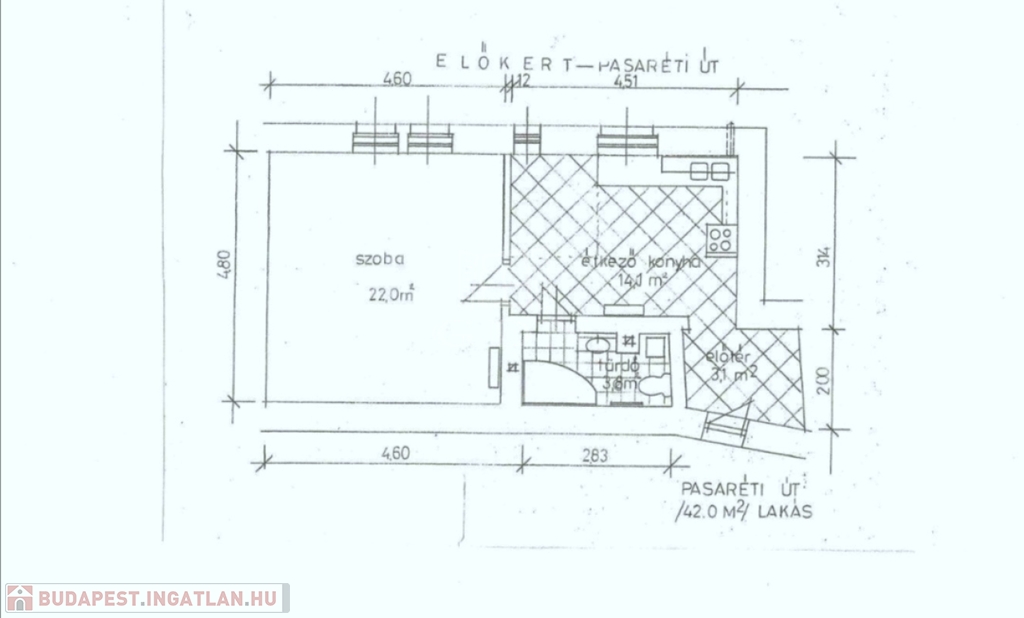 II. Ker Pasaréti úton 42nm-es, konyha- nappali+szoba +fürdőszobás, ÉK-i tájolású előkertre néző szuterenlakás eladó.