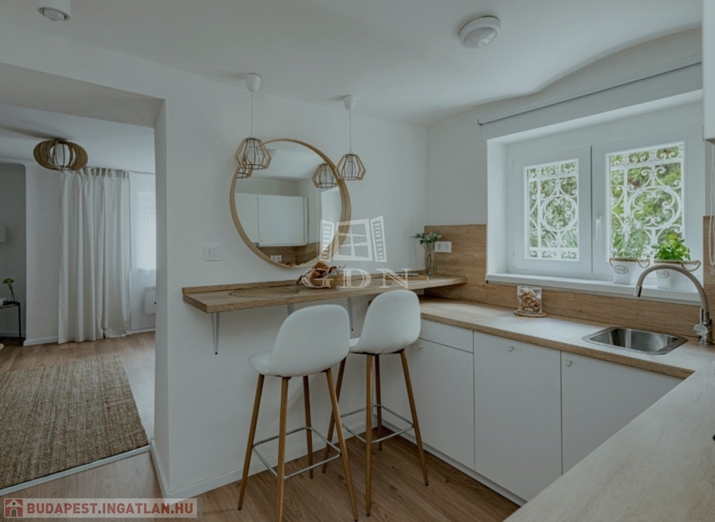 Csendes, zöldövezeti, parkos kertben lévő, teljesen felújított félszuterén lakás eladó