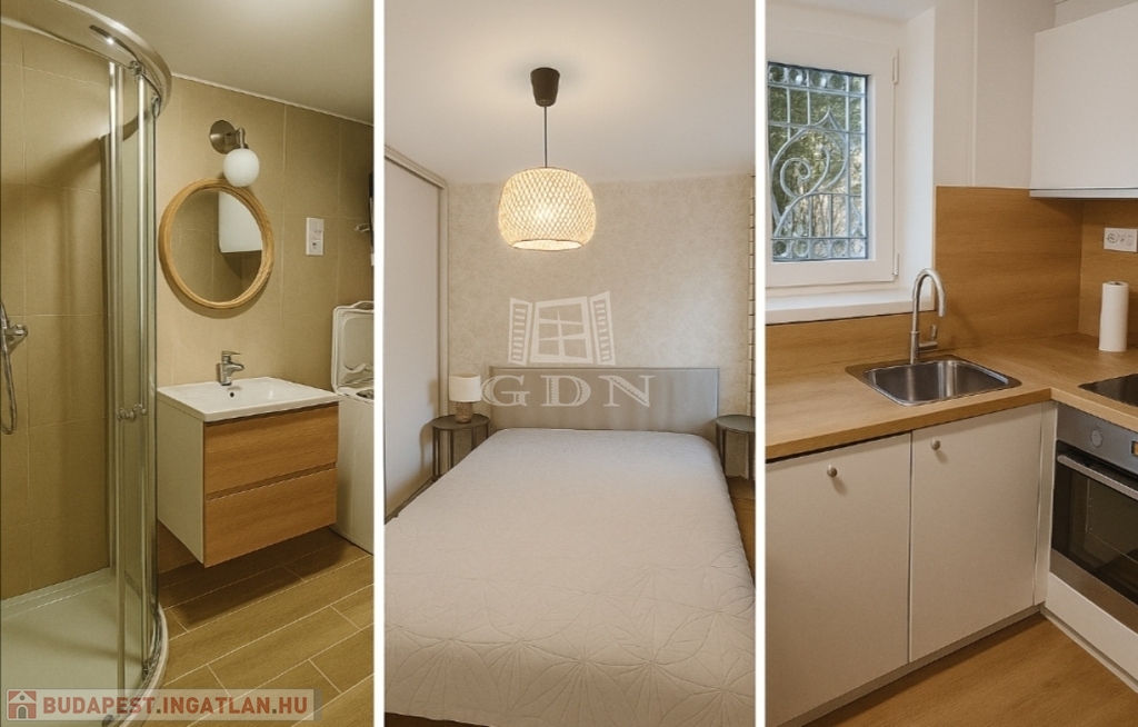 38 m² (valós 39 m²), nappali + háló, étkezős konyha, zuhanyzós fürdő.