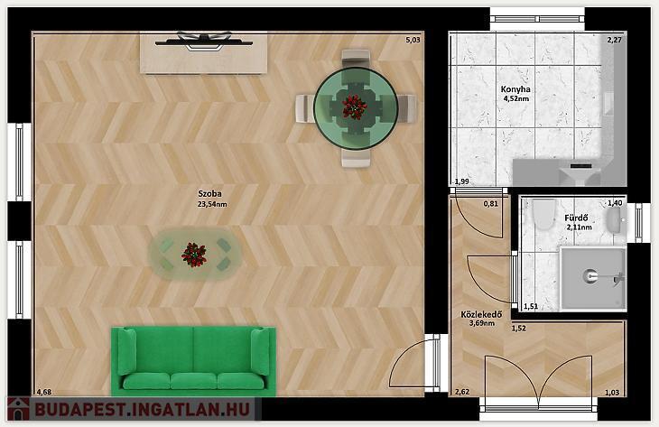 A lakás szerves részét képezi a közvetlenül mellette található 2nm-es kamra.