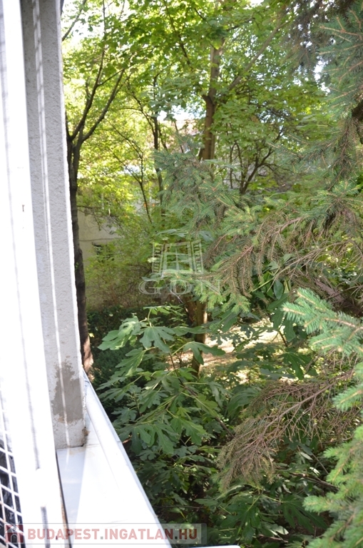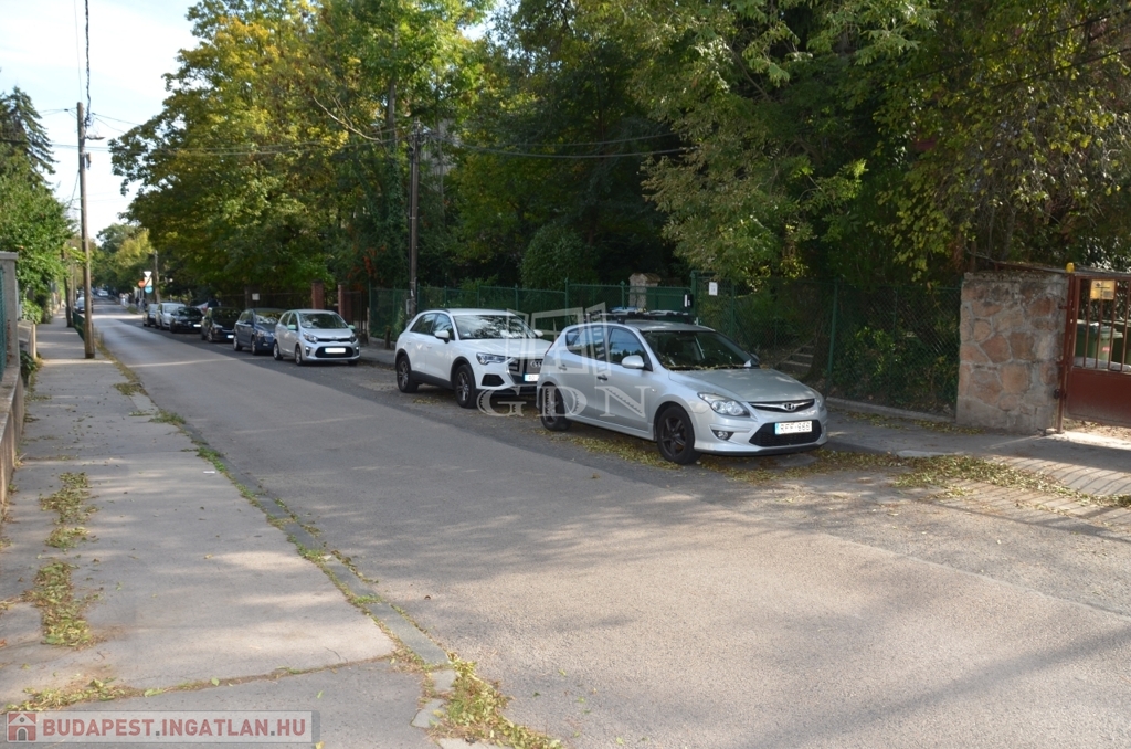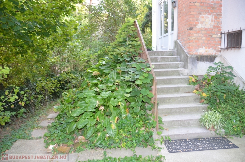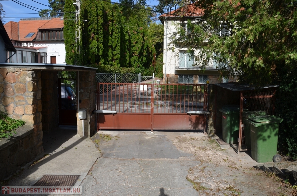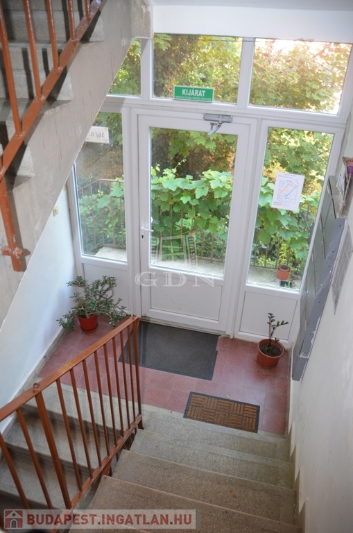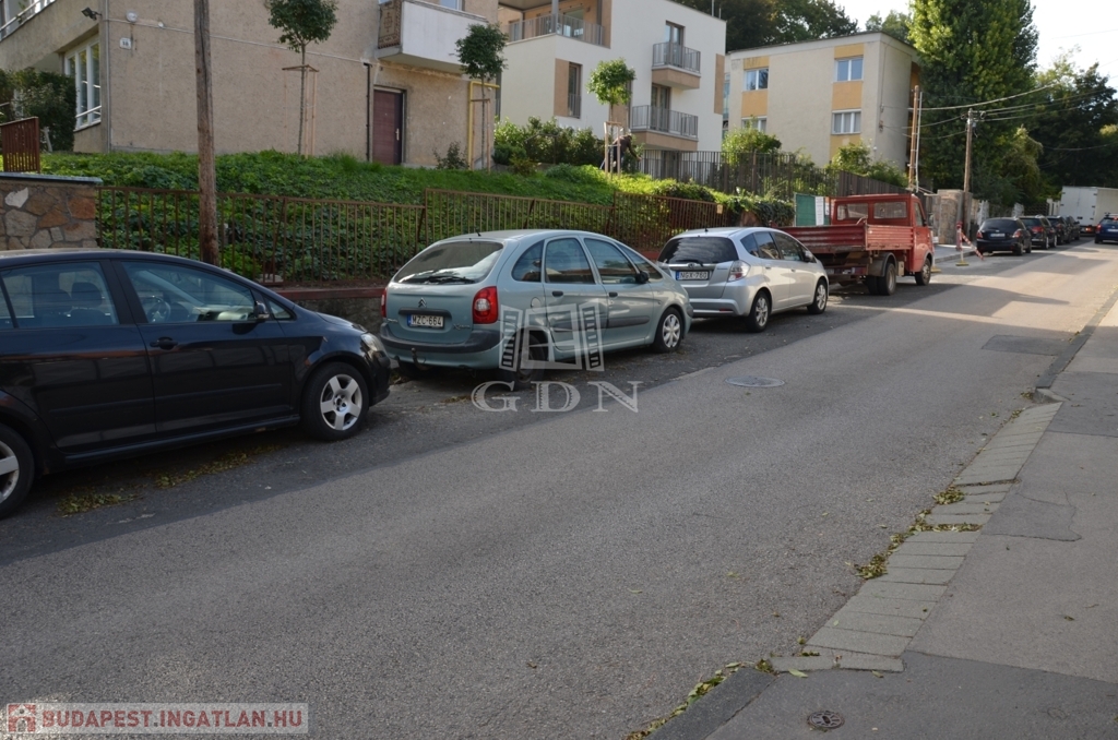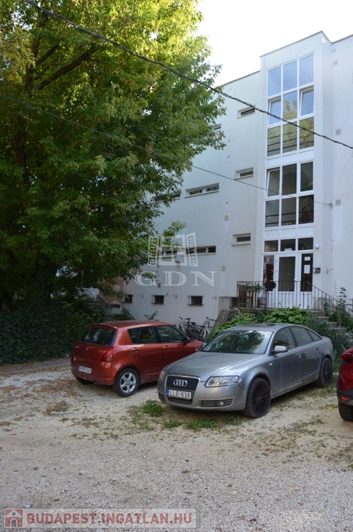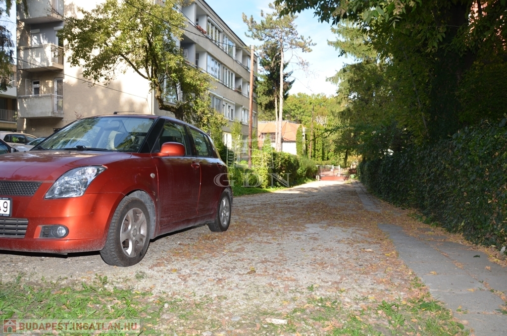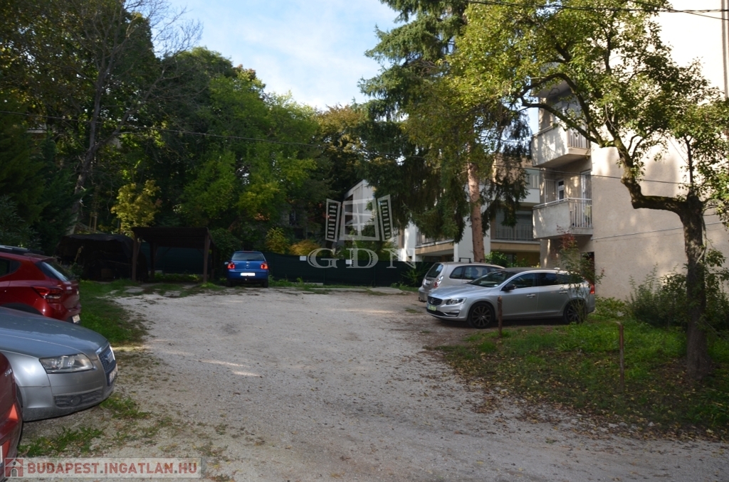 A társasház rendezett, a lakáshoz udvari autóbeálló is tartozik, az utcán a parkolás ingyenes — ami Budán különösen nagy előny.