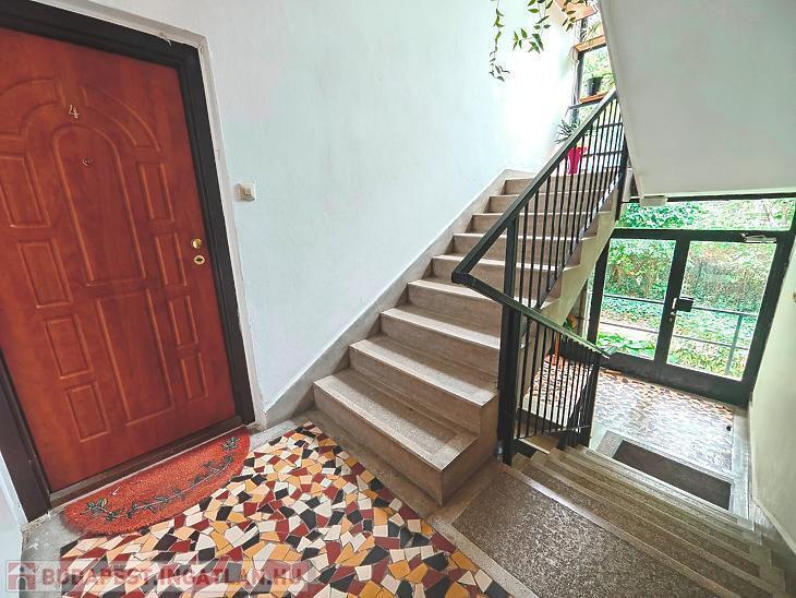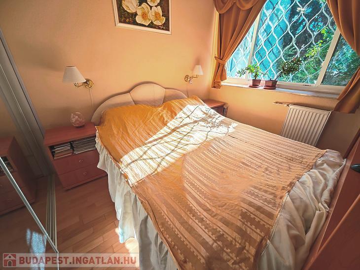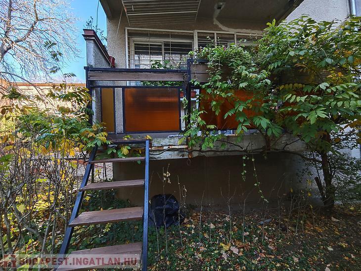 Hűvösvölgyi úton, közel a Szerb Antal utcához, egy parkosított területen található, az úttól távol eső társasházban, egy magasföldszinti, kertre néző, jó állapotú, jó elosztású, erkélyes, kertkapcsolatos lakás. A lakás minden helysége ablakos, a konyhában található egy kis étkezősarok, és egy ablakos kamra is. 2015-ben történt a teljes körű felújítás, beleértve a vezetékeket, és a fűtésrendszert, mely kombicirkó. A nappaliból nyíló loggia Dk-i tájolású, és oldalkert irányába néz, ahonnan egyből le tudunk menni a kertbe. Pincetároló és 1 autó számára kerten belüli gépkocsibeálló tartozik a lakáshoz. Ezenkívül tartozik egy 15nm-es garázs is a lakáshoz, melynek vételára +18M Ft.