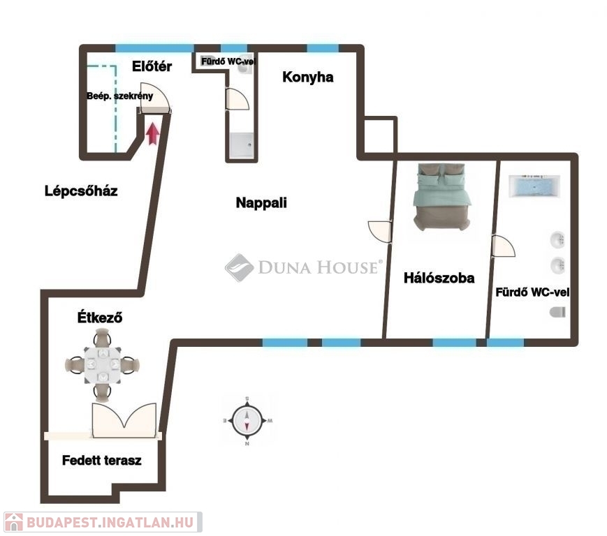 Elrejtve a világ szeme elől! Budapest II. kerületében eladó egy nappali + hálószobás, erkélyes lakás két fürdőszobával!66 nm-es, fedett teraszos, belső kertre néző gyönyörű Otthon egy kevés lakásos, zárt lakóparkban található. A fényárban úszó előtérből a nagyméretű nappaliba érkezünk. Innen nyílik egy elszeparált étkező, abból pedig a hangulatos fedett terasz kilátással a kertész által gondozott belső kertre. Mindkét fürdőszobában olaszos stílusú csempe díszíti a falakat, a nagyobb fürdőszobában pedig egy hatalmas jakuzzis kád is van.A lakás az épület 2. szintjén helyezkedik el, ahol másik lakásnak már nincs bejárata. Felette még egy beépítetlen padlástér van.Egy festés után költözhető, tehermentes az ingatlan!Parkolás a teremgarázsban lehetséges (kötelezően megvásárolandó), amelynek irányára további 15.000.000 Ft.Gyakorlatilag minden irányból az erő határolja (Budakeszi hegyek) - ezt a lakást a friss levegőt, sok sok zöldet és nyugalmat kedvelőknek ajánlom!Az ingatlan megközelítése tömegközlekedéssel is lehetséges, azonban személygépkocsival javasolt.