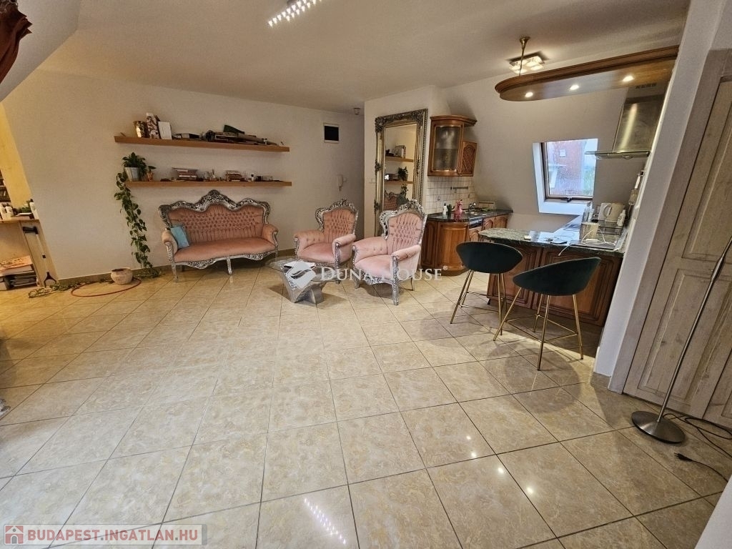 A lakás az épület 2. szintjén helyezkedik el, ahol másik lakásnak már nincs bejárata. Felette még egy beépítetlen padlástér van.