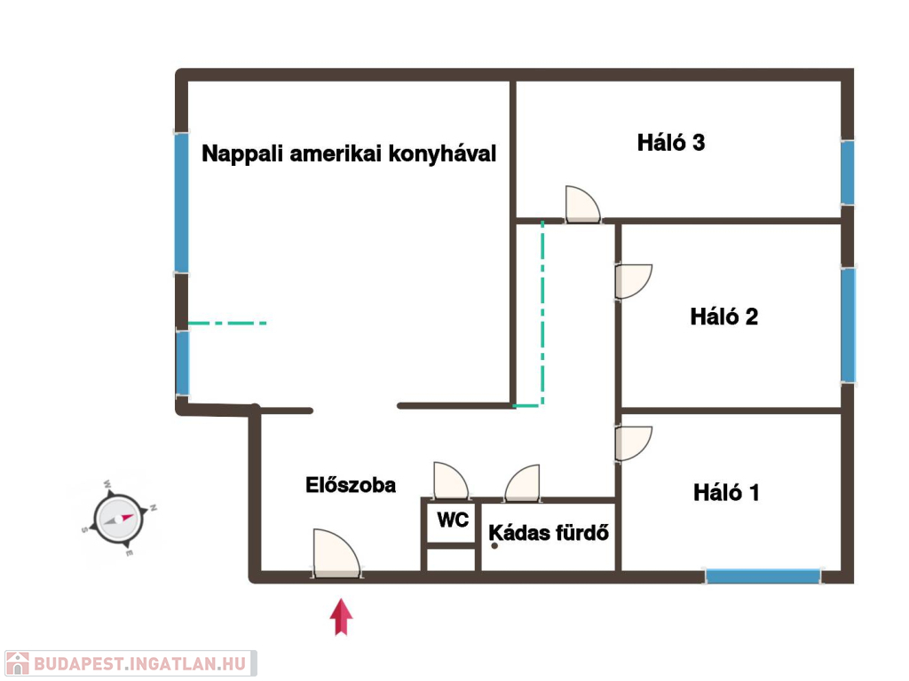 - nappali + 3 nagy méretű félszoba melyek külön nyílnak, egymástól jól elszeparáltak