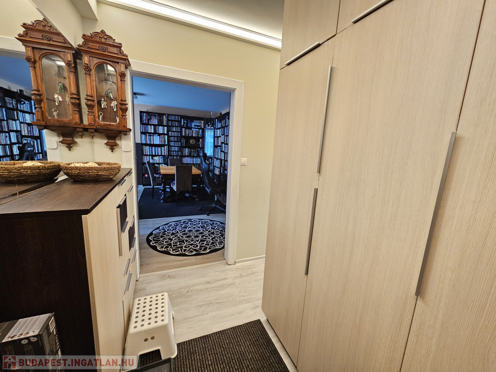 - A lakás különlegessége az egyedileg, asztalos által, prémium minőségben elkészített beépített szekrények megléte,