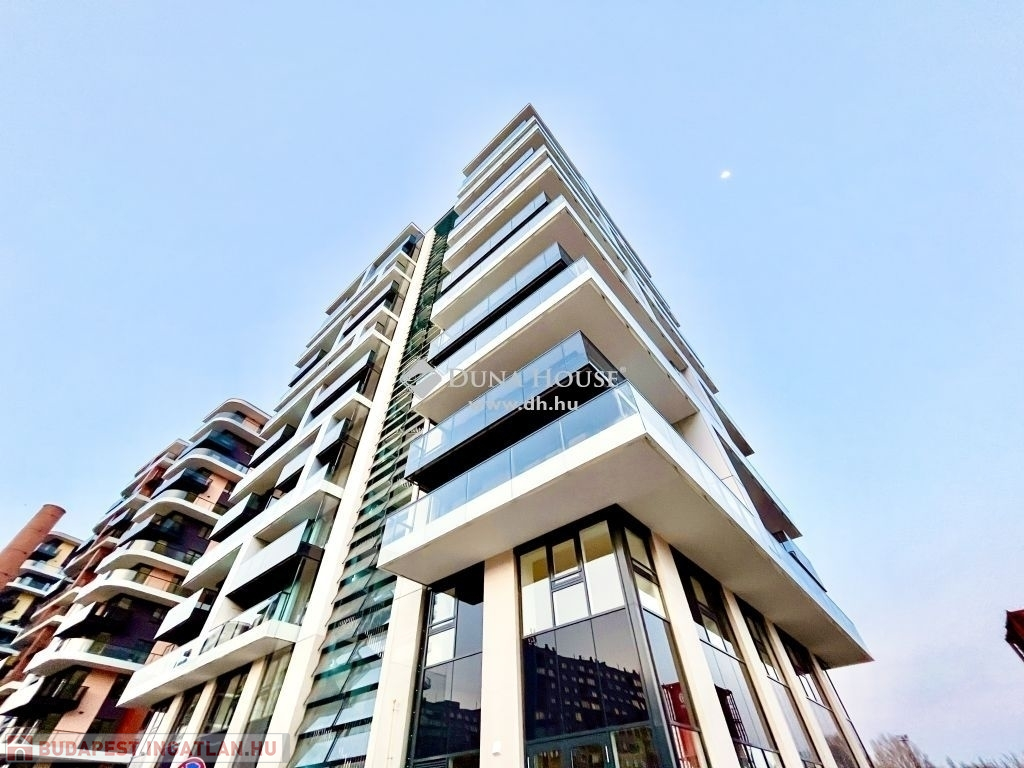 A Waterfront City - 4.ütemében, 2025-ben átadott 6b épület 2. emeletén, 43 m² br alapterületű, különleges a Dunára félpanorámával, zöld kilátással és 26 m²- es hatalmas félkörerkéllyel rendelkező saroklakást kínálunk megvételre.