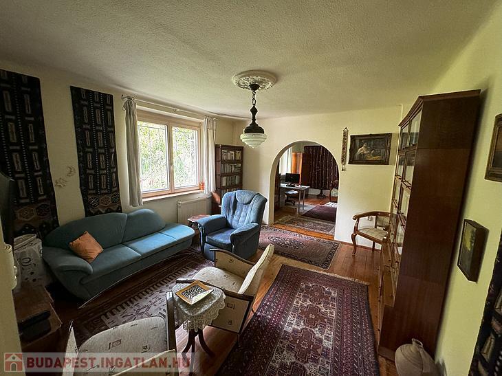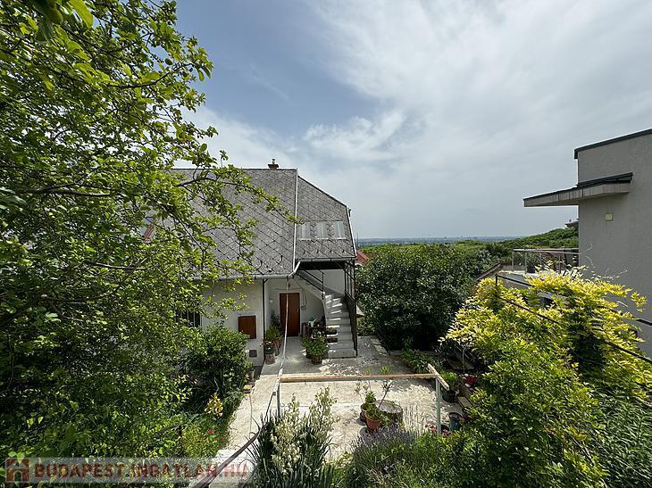 Csillaghegyen ELADÓ egy ÖRÖKPANORÁMÁS kertkapcsolatos lakás fedett kocsibeállóval.